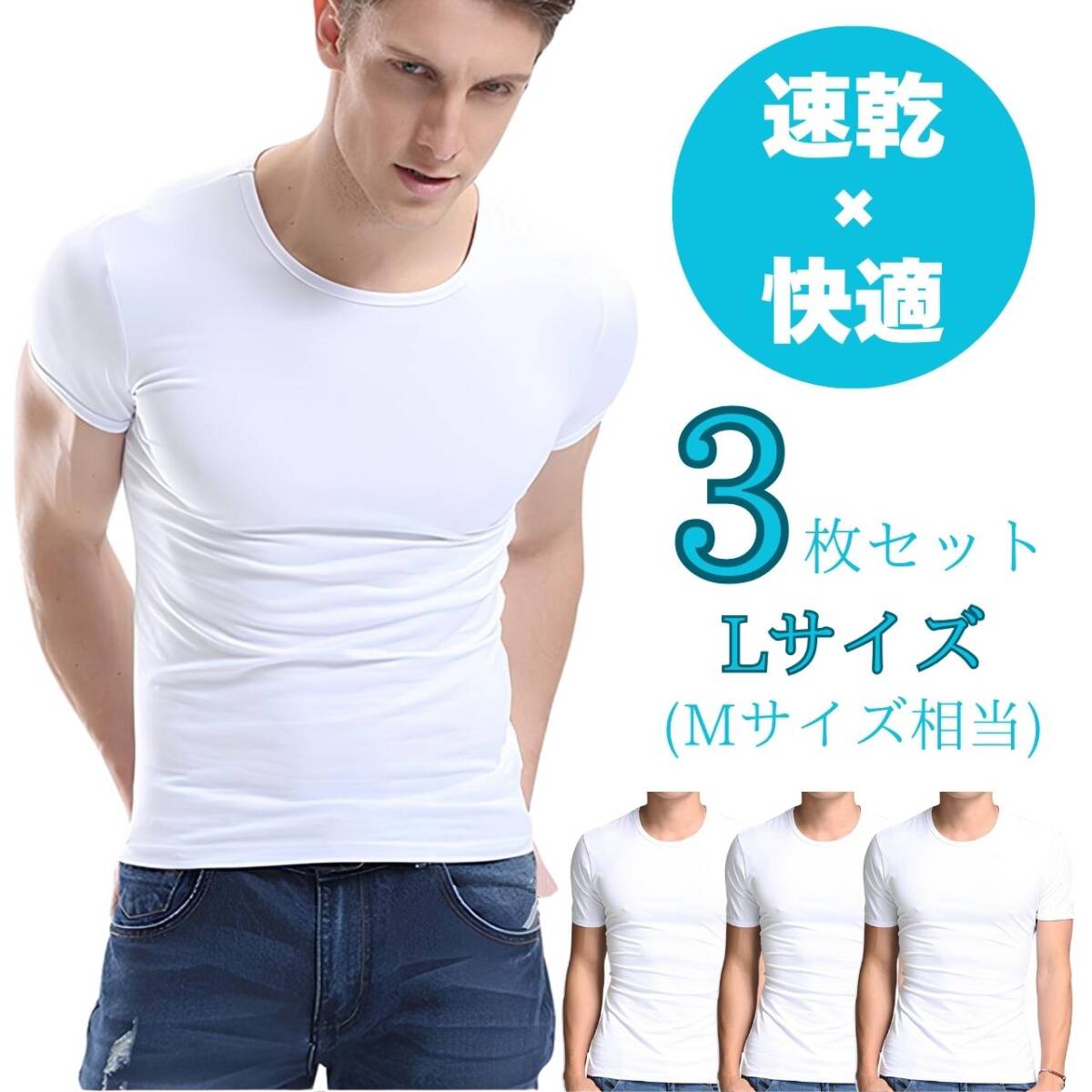 夏 Tシャツ シャツ 3枚 インナー L 下着 メンズ 丸首Tシャツ ホワイト