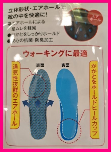 ・お好きなサイズをお選び頂けます。 1、メンズ:26.5〜28cm 2、レディース: 24.5〜26cm (フリーサイズ:サイズに合わせカットできます) ★落札,お支払い後、取引ナビにて番号の連絡をお願い致します。 ・ウォーキング インソール:歩きをサポート(スニーカーに最適) (カジュアル・ビジネスにも。。。) ・立体形状・エアホールで靴の中を快適に! 【通気性抜群】 :通気性抜群のエアホールによる足ムレを軽減 【かかとホールド】 :かかとをしっかりホールド(ヒールアップ) 【抗菌・防臭加工】 :安心の抗菌・防臭加工でいつも清潔に保ちます。 ★各々サイズに合わせカットできます。 ・素材:表面:ポリエステル、本体:ウレタンスポンジ ・未使用/新品 ・ご希望の数など、連絡頂ければ準備可能です。 (入札前に、ナビにてご質問を頂ければと思います) ・気になるところがありましたらご質問してください。 (デザイン等が多少変更になることが御座います) ・他にも出品中ですのでご覧下さい (^-^)。 まとめていかがでしょうか。 ・それではよろしくおねがいします。 | |||
