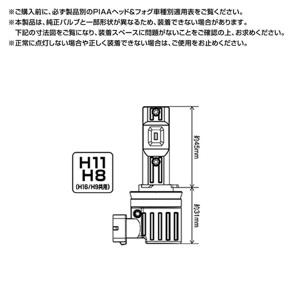 | バルブ形状 | H8/H9/H11/H16 兼用 |