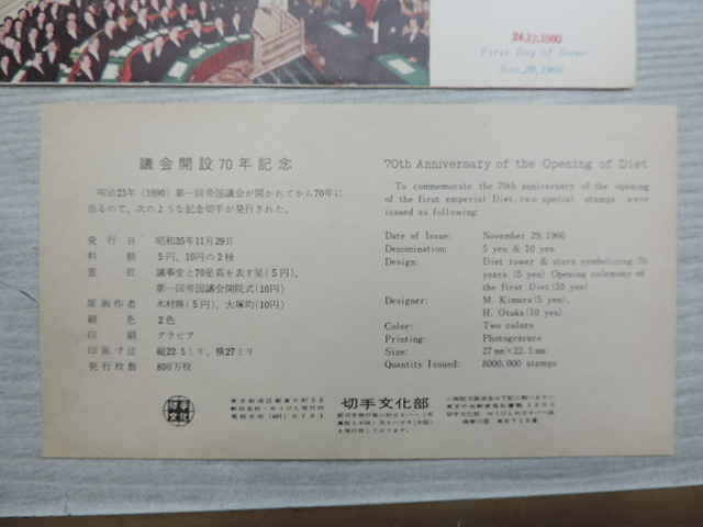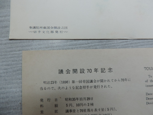 ★議会開設七十年記念★ 初日カバー 昭和35年12月24日・東京 10円切手・5円切手×各1枚 切手文化部発行| 出价者 | 信用 | 价格 | 时间 |