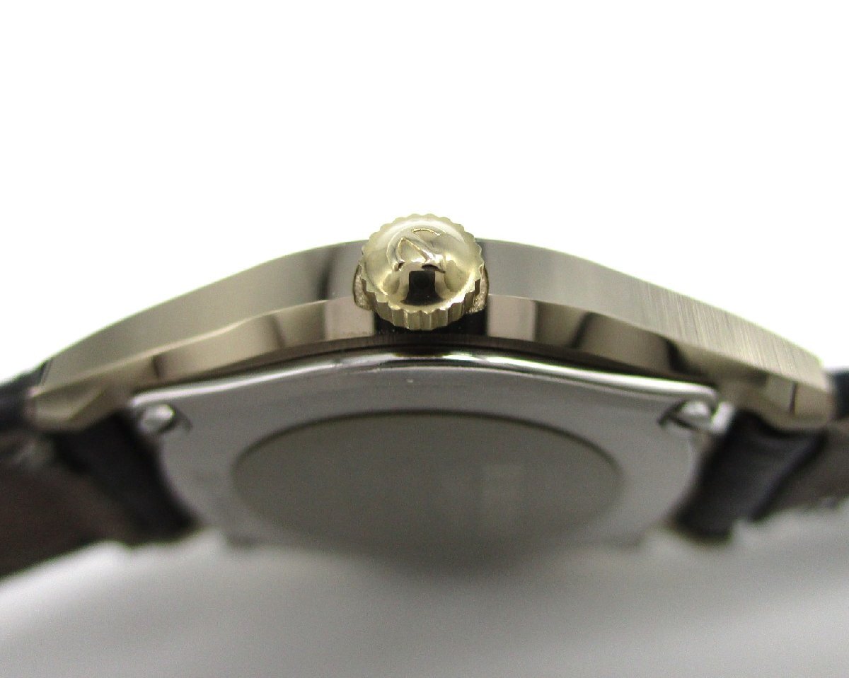 RADO ラドー ダイヤスター レディース・クォーツ 【型番】153.0406.3 【およそのサイズ】ケース径:23mm 腕周り:~16.5cm 【状態】本体:ガラスは無傷、文字盤に汚れは見られません。他部も特に傷感は見られません。 ベルト部:純正です。革部は中程度の使用感があり、ご使用に差し支えるようなダメージはありません。 クォーツ時計の入っている電池はモニター電池扱いでお願いいたします。発送までに止まった場合は電池交換後、発送いたしますが、その後の電池切れの際は、落札者様御自身でメーカーもしくは一般店に電池交換にお出しください。 【付属品】箱・保証書等は無く、時計のみです。 | ||||