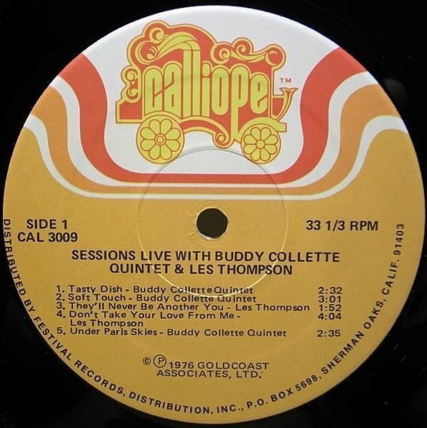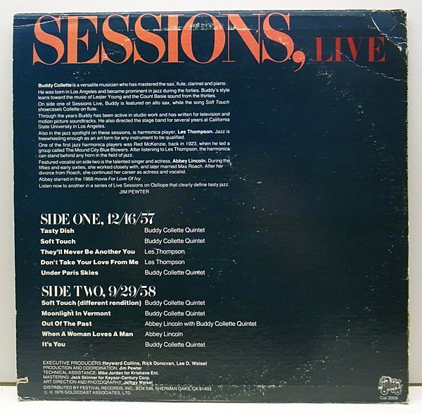 | artist BUDDY COLLETTE / ABBEY LINCOLN title Sessions, Live label Calliope / CAL 3009 year 1976 format LP |