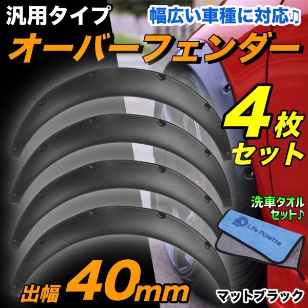 | 洗車タオル付き 汎用 オーバーフェンダー 40mm マットブラック 4枚セット ジムニー JB23W JA12V JA22W JA11V カプチーノ EA21R EA11R 新品 | ||