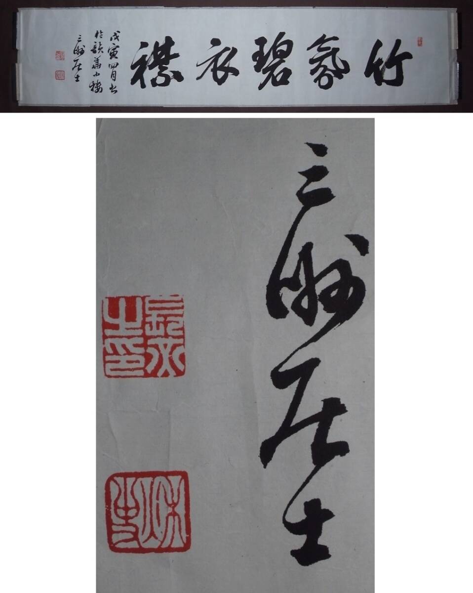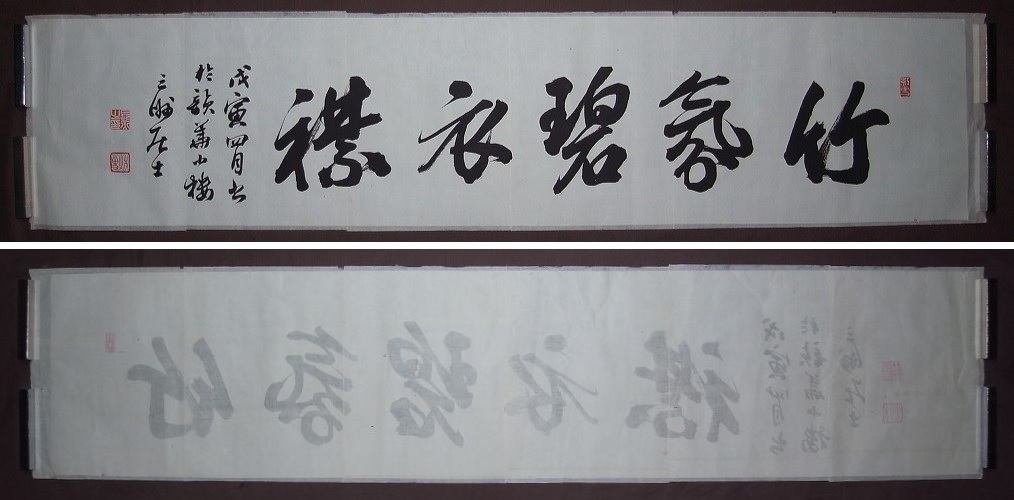 ◇出品物紹介長三洲『竹氛碧衣襟』まくり〔真作の紙本工芸印刷版〕でございます。