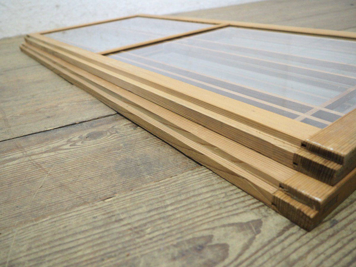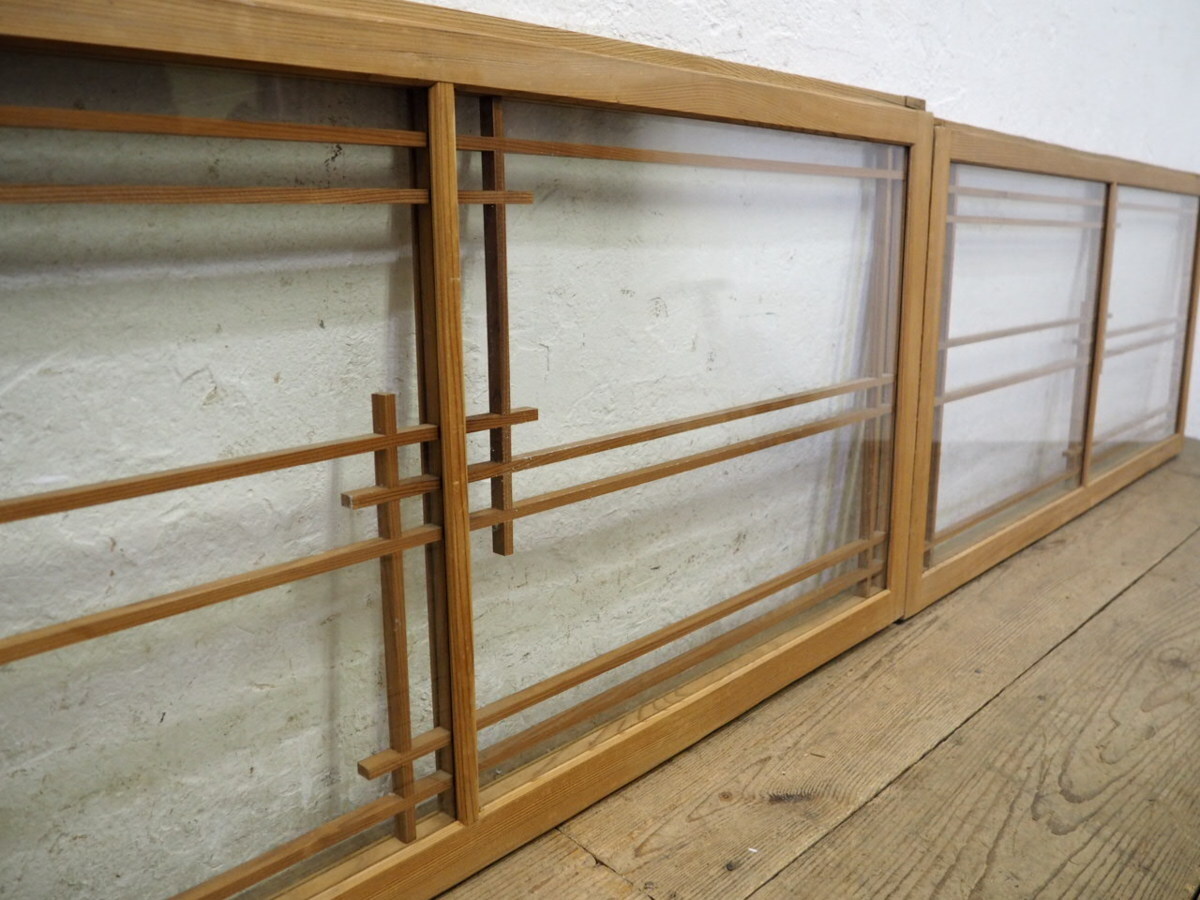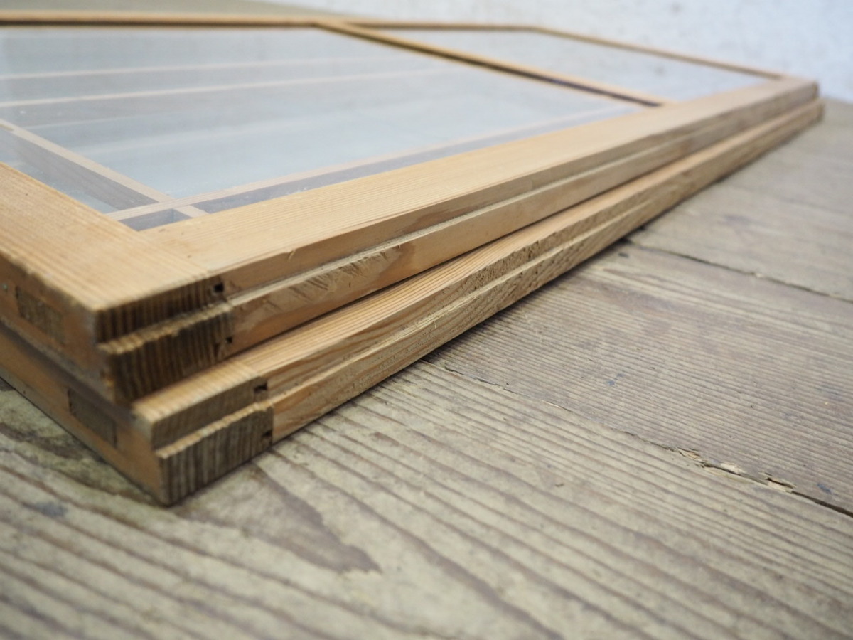 商品情報 | ■商品詳細■ レトロな古い木枠ガラス戸、2枚セットです。 長年使い込まれた味わいのある品です。 ガラスは、透明ガラスを使用しています。 一般のご家庭はもちろん、レトロな店舗什器にもお勧めです。 経年の傷や欠け、染み等がありますが、使用には問題ありません。 ガラスにヒビや割れはありません。 古い物とご理解いただければ幸いです。 ◆別カテゴリーにて同じデザインの品(T912)を出品していますので まとめてご希望の場合は、ストア内検索で上記の管理番号を検索して頂ければと思います。 売買済みの場合はご了承下さい。 ご不明な点などありましたら、質問欄にてお願いします。 ■サイズ■ 全体(最大値) (H 49cm×W 110,5cm×D 2,5cm)×2枚 竪框 3,5cm 多少の誤差はご了承下さい。 |
