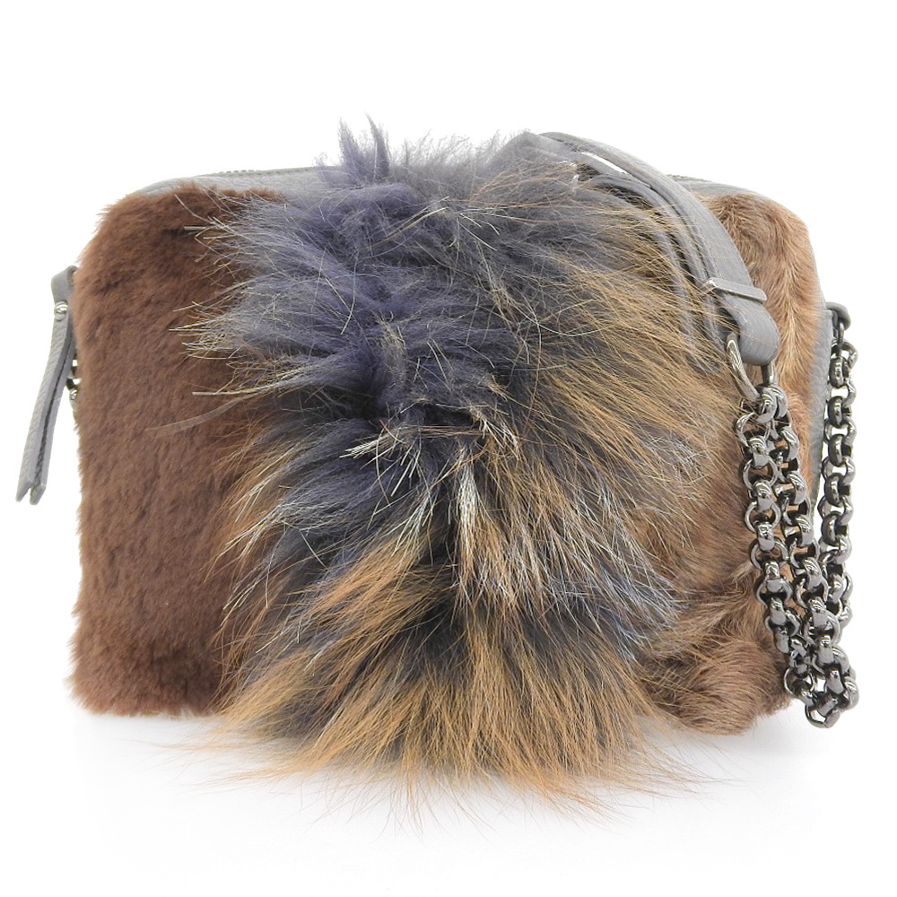 | 超美品 ファビアナフィリッピ 現行タグ フォックスファー & レザー ワン ショルダー バッグ チャコール レディース ほぼ未使用 |