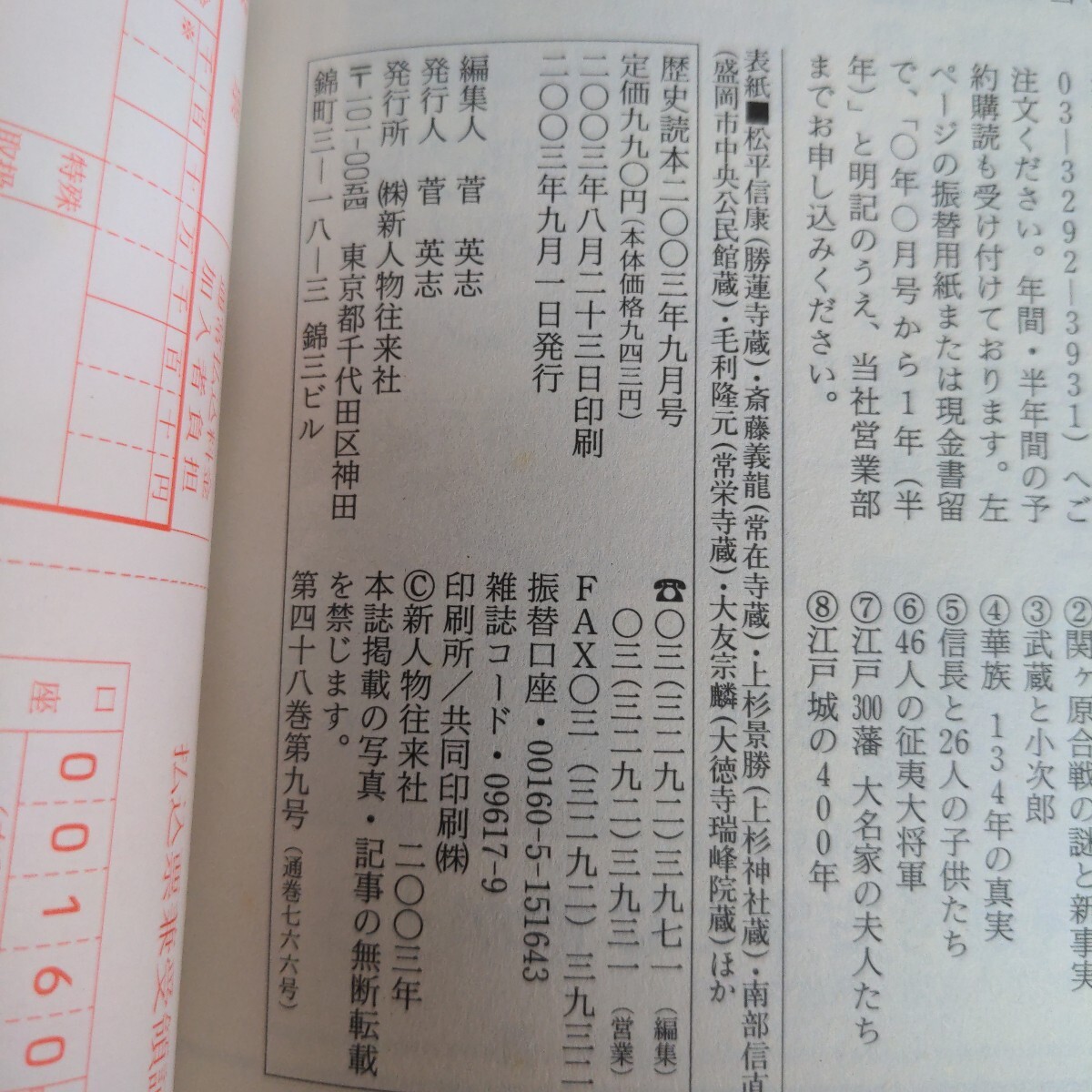 Ja-070/歴史読本 2003年9月号 特集/戦国名将の後継者 偉大な先代の跡を継いだ「二代目」の栄光と苦悩/L9/70723 [浏览原始页面]
