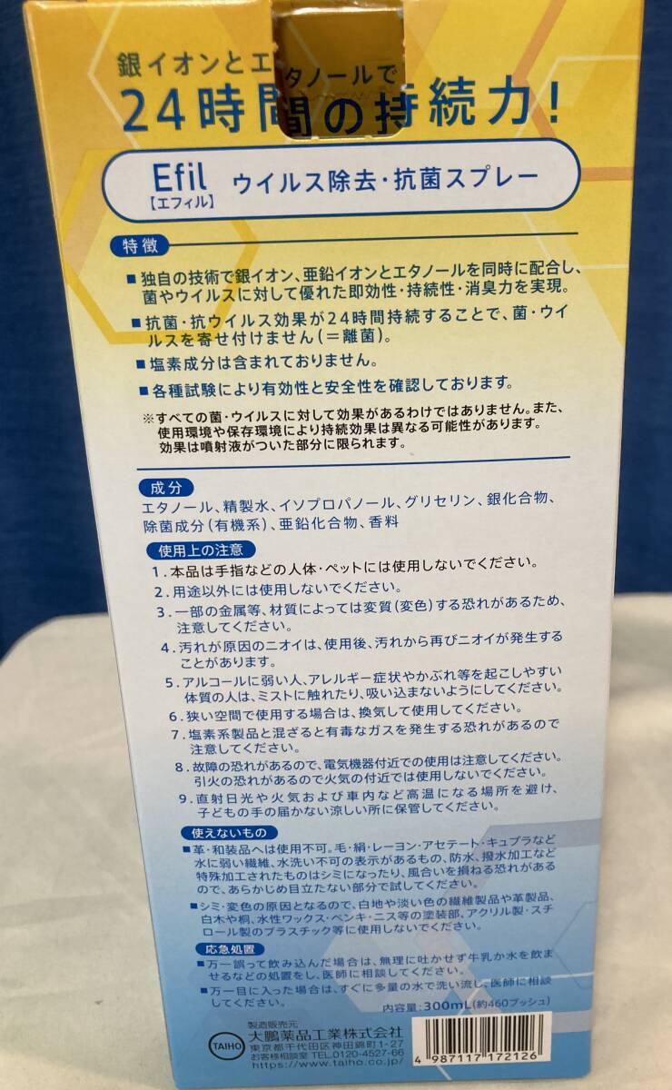 Efil 抗菌・ウイルス除去スプレー ブランド:大鵬薬品| 出价者 | 信用 | 价格 | 时间 |