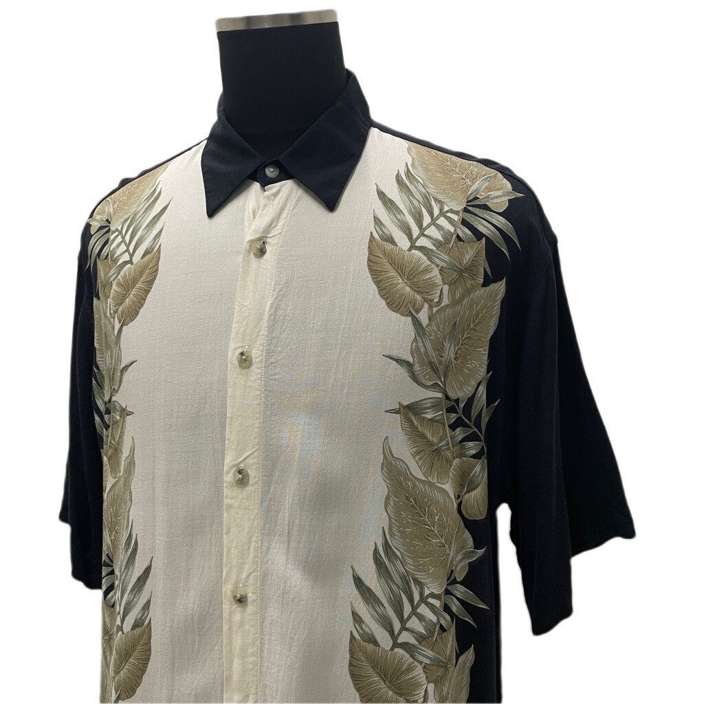 アメリカ古着になります。 90年代のビンテージです。 ドレープ感のあるレーヨン生地。 黒ベースの両サイドに入ったリーフプリント。 モダンでシックなデザインです。 ボタンはプラスチック。 洗濯済みになります。お探しの方におすすめです。 | |||