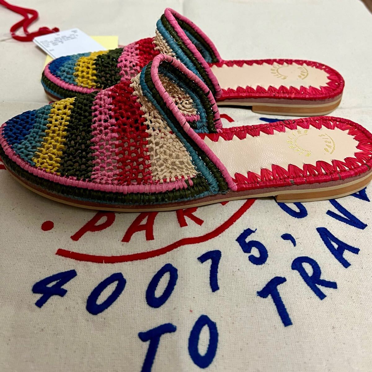 IENAのKILOMETRE PARIS/キロメートルパリ マルチカラー バブーシュ サンダル、タグ付きの新品です。保管上の汚れやダメージはありませんが、クローゼット保管ですので神経質な方はご遠慮ください。| 出价者 | 信用 | 价格 | 时间 |