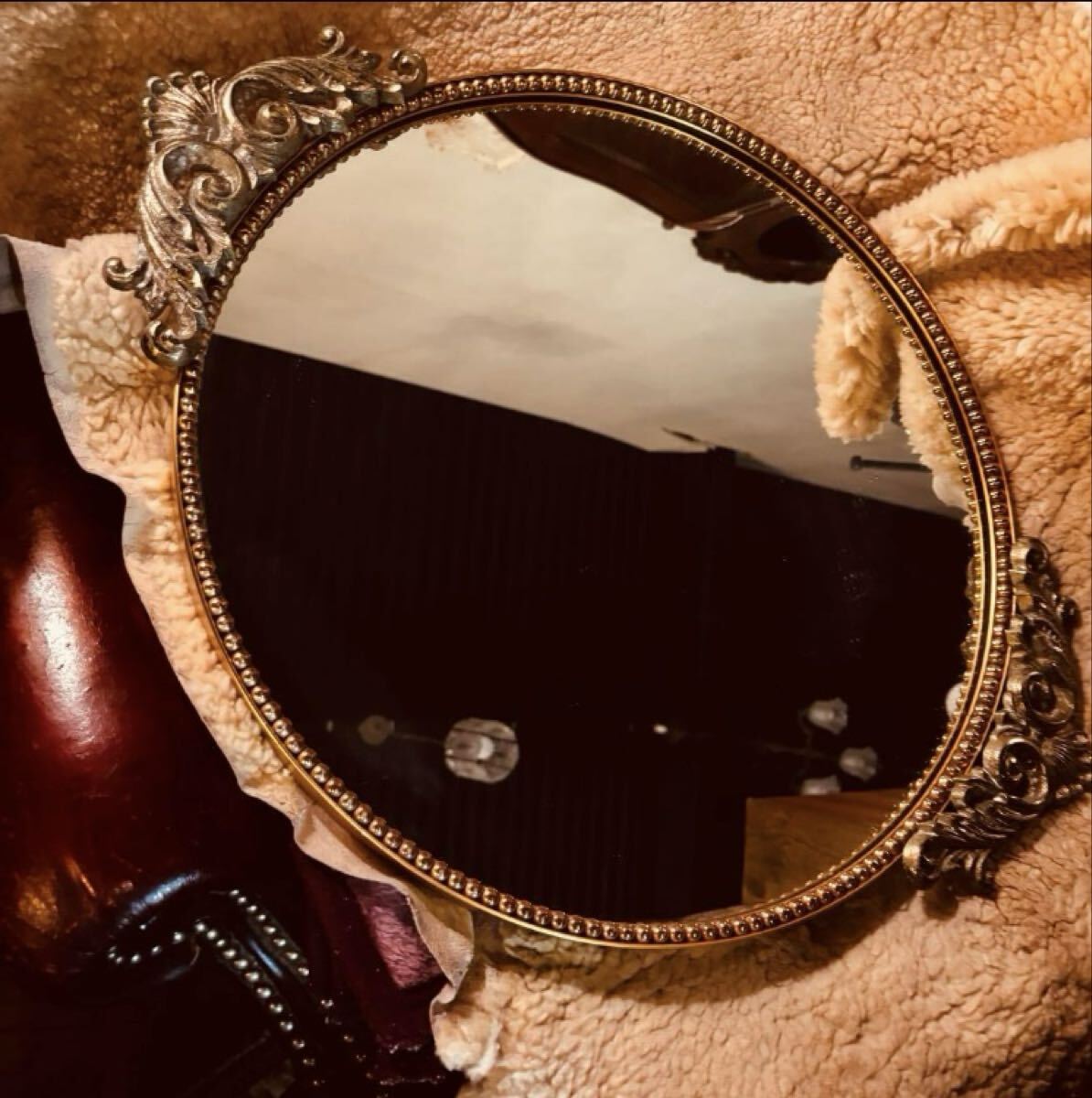 湯布院アンティーク ヨーロピアンレトロビンテージ ウォールミラー ゴールド 壁掛け鏡 [浏览原始页面]