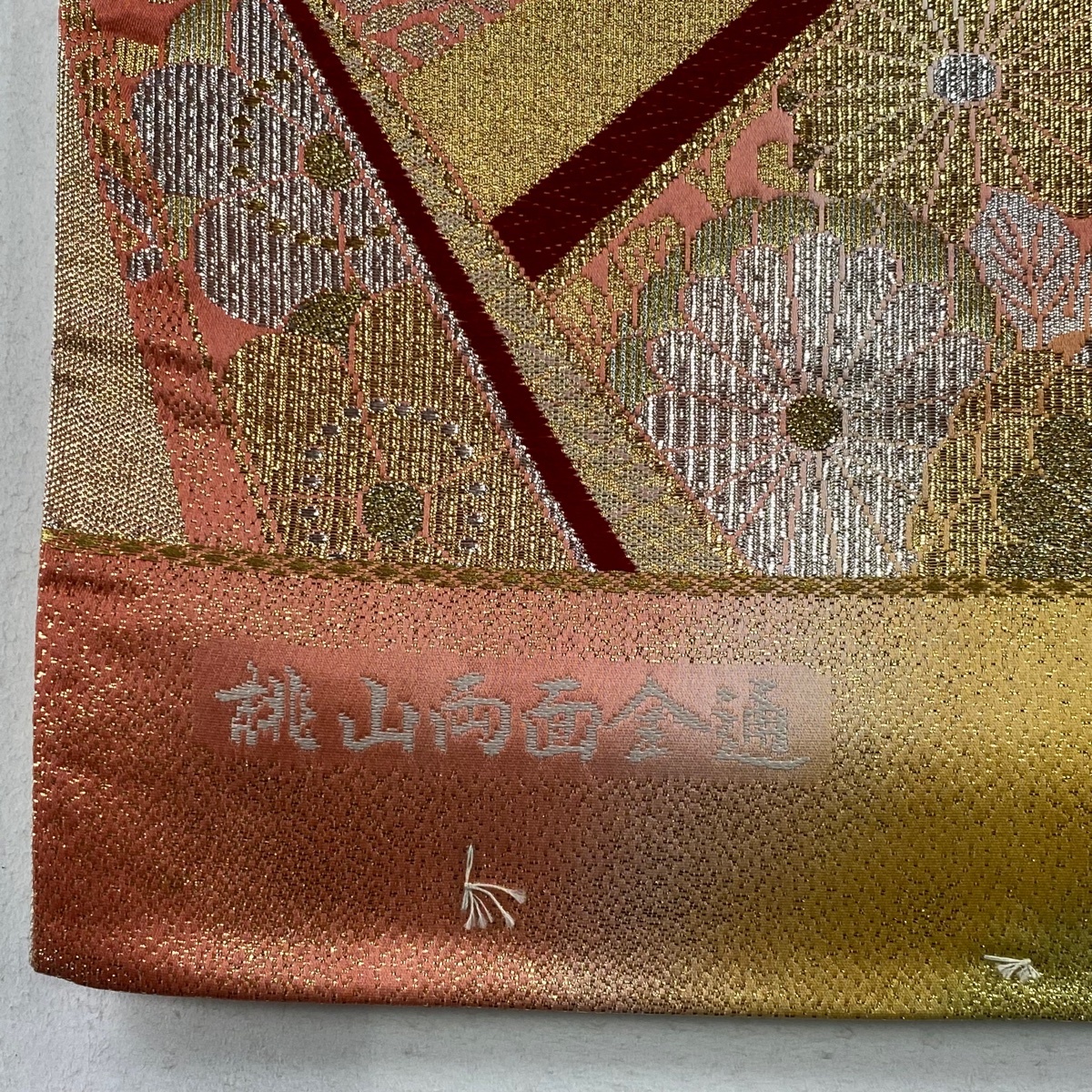 | 袋帯 美品 秀品 証紙 振袖向き 菊唐草 有職文様 箔 ピンク 全通 正絹 【中古】 |