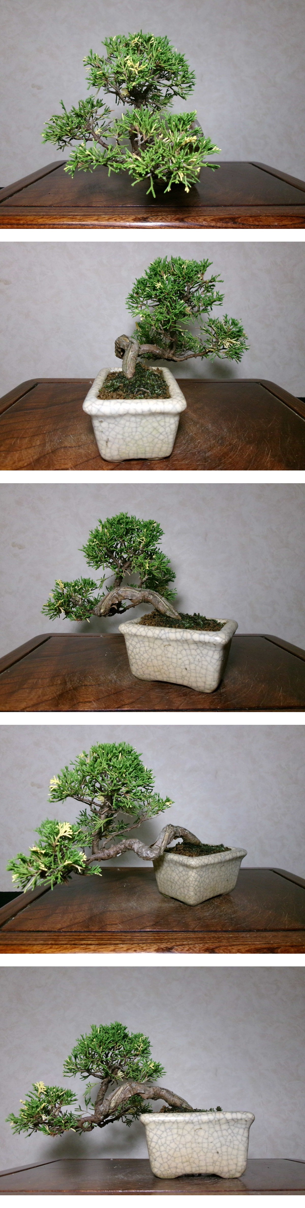 超希少 珍品 古木感上々 展示・添えにも 斑入り真柏 風情ある懸崖仕立て 持込の小品盆栽 樹高14センチ(地際から9センチ) | |||||||||||