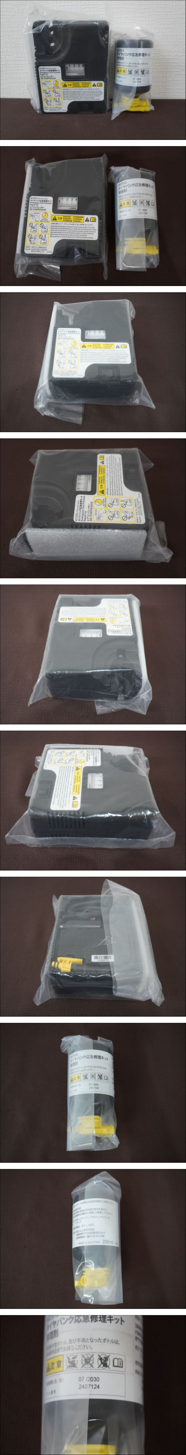 商品説明 | ●ダイハツ 純正品 応急 パンク応急修理キット エアコンプレッサー 住友ゴム工業製 (未使用品) ●パンク修理剤の有効期限は、2030年7月と記載がされています。 ●比較的に綺麗な状態で、画像に映っている2点になります。掲載した画像にて、状態の確認をお願い致します。 |