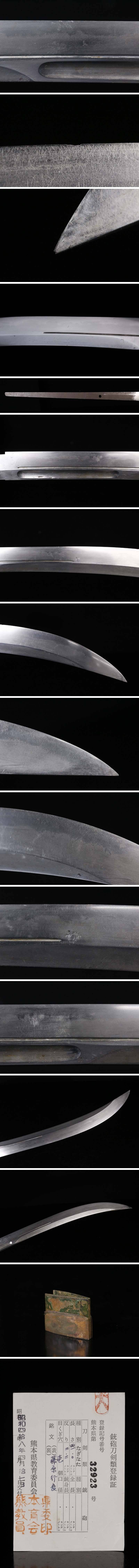 * * * 商品詳細 * * * ここでしか出逢うことのできない唯一の美をご紹介させて頂きます。 刃渡り41㎝もの刃渡が大迫力の大薙刀のご紹介です。 棒樋と添樋の入った明るい本身は働き豊富で 大きく反った鋭利な緊張感のある姿は実に迫力がございます。 刀身は明るく働き豊富、薙刀の美しさと魅力が存分に味わえる逸品です。 この機会に是非ご愛蔵ください。 ■商品内容/薙刀本体、白鞘、登録証。 ■本身サイズ 全長/79.3㎝ 刃渡/41㎝ 元幅/2.8㎝ 先幅/2.3㎝ 元重/0.7㎝ 先重/0.6㎝ 本身重量/552g ■状態/刃切はございません。 スレ、傷、錆び、刃毀、切先に欠け、 白鞘にスレ、傷、焼け、へこみ、外れ、ハバキに錆び、汚れがございます。 ※写真にてご確認、ご了承の上ご入札ください。 ご落札(購入)後は所定の期日までに都道府県の教育委員会に所有者変更の届出をお願い致します。 ![]() ![]() * * * 支払詳細 * * * !かんたん決済 * * * 発送詳細 * * * 入金確認後3営業日以内に発送致します。 ※直接引き取りも可能です。 60~160サイズにつきましては 佐川急便、ゆうパックのどちらかで発送いたします。 ゆうパック発送の場合、弊社の発送日から追跡サービスに問合せ番号が反映されるまで 約1日ほどお時間がかかりますのでご了承下さい。 * * * 注意事項 * * * 運送中の破損があった場合は速やかに当社までご連絡下さい。 保険を利用するのに受取連絡後に運送会社による現場での破損状況確認が必要となります。 勝手に返送されますと保険の適用外となりますのでご注意ください。 * * * * * * お問い合わせ:082-236-8669 |