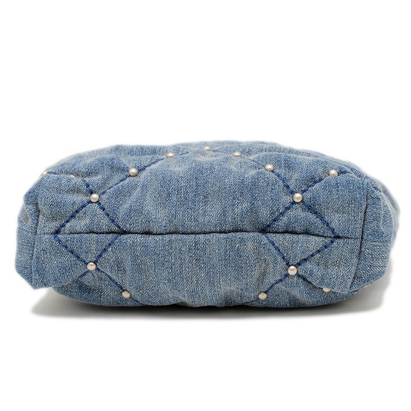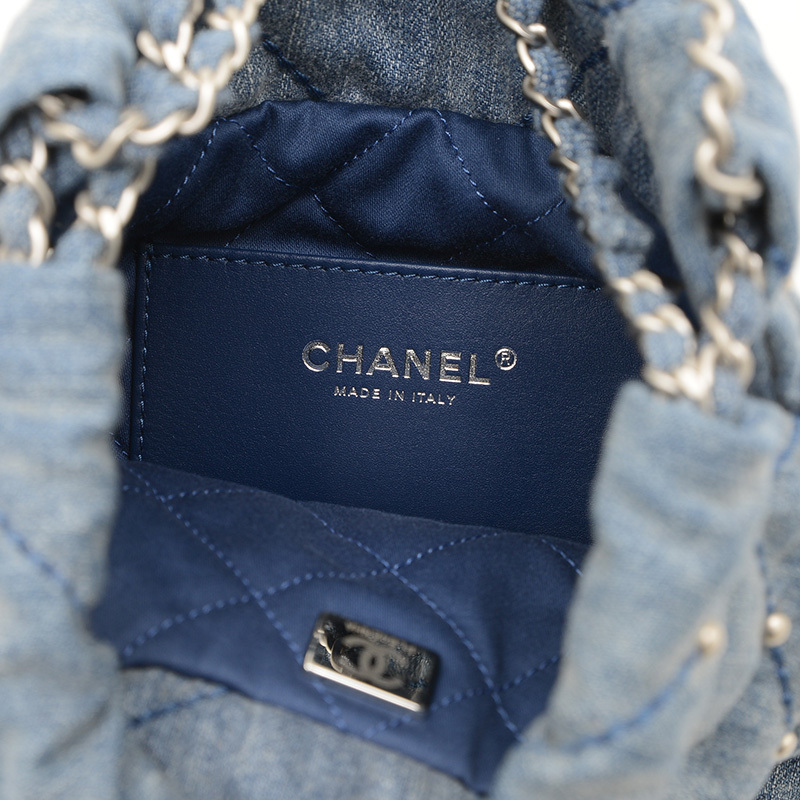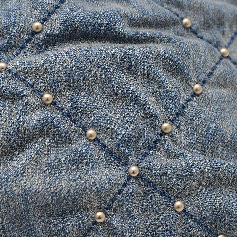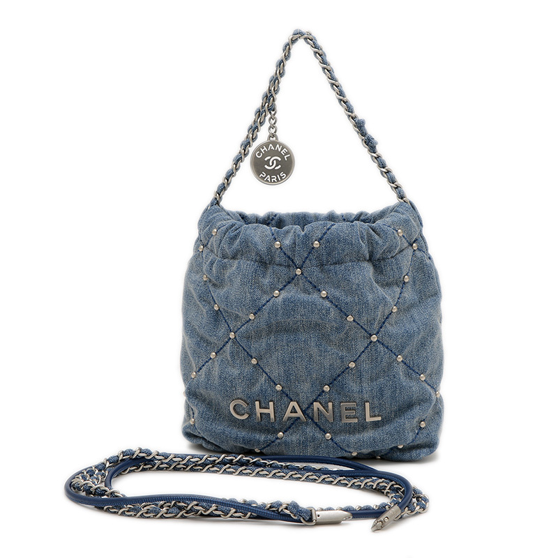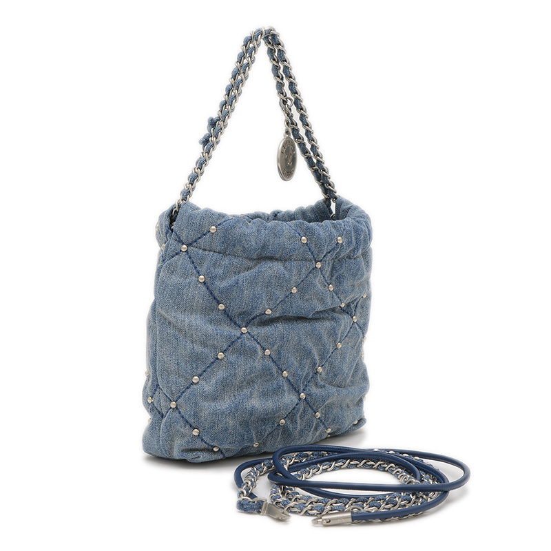| 商品特徴 | 軽やかなデニムキャンバス素材に、小さなスタッズが散りばめられたチェーンショルダーバッグです。鮮やかなブルーと、ヴィンテージ調のゴールド金具、そしてアイコニックなCCロゴのチャームがエレガントなアクセントになっています。巾着型の愛らしいミニサイズながら、日常の必需品をスマートに収納でき、カジュアルなスタイルを上品に格上げします。 |