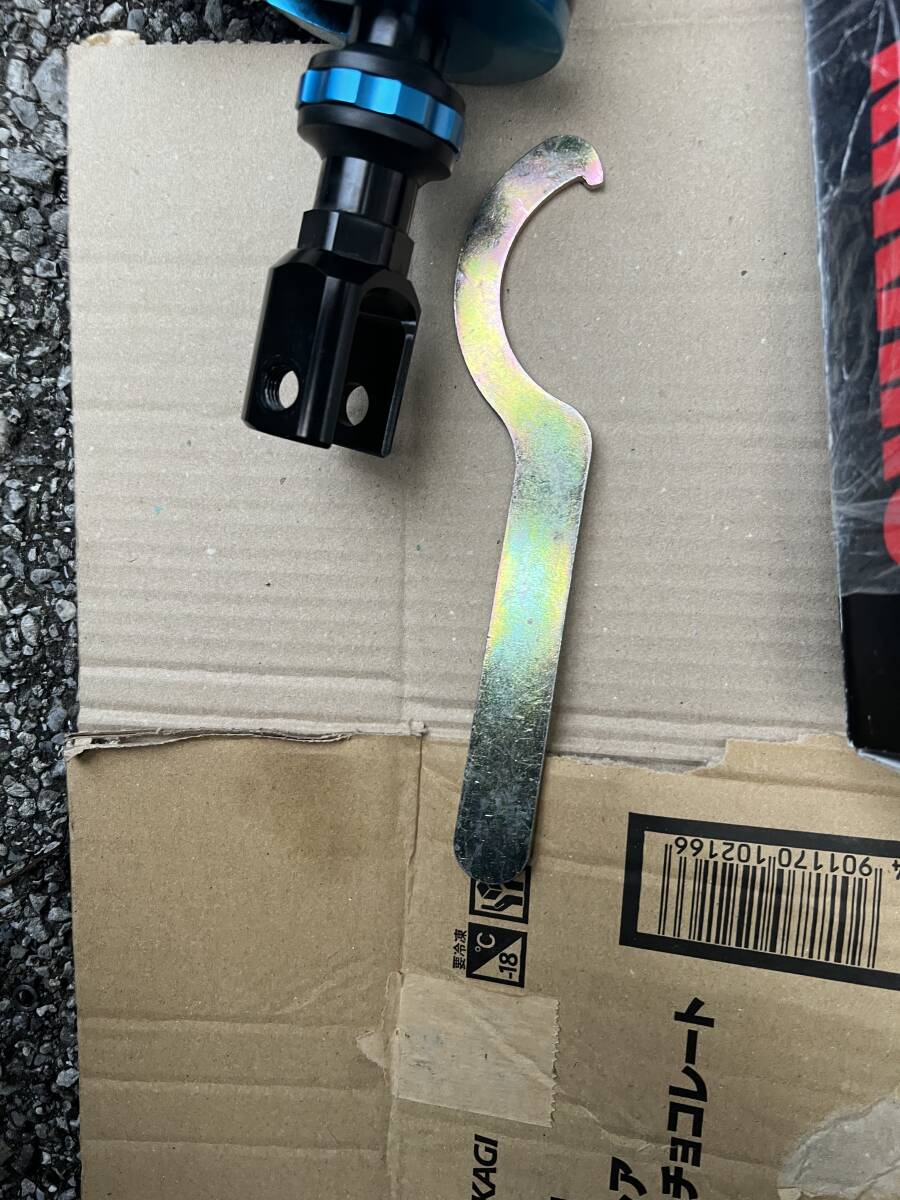 レンチ付きです。箱はおまけです。品番は1KD-0028-Bです。新品で買って3ヶ月位しか使っていません。少し車高が上がるので外しました。減衰調整の幅も広いのでノーマルより乗り心地が柔らかくなったり固くなったり出来ます。中古なので使用感、小傷有ります。中古につき一応OHベースでお願い致します。ノークレーム、ノーリターンで
