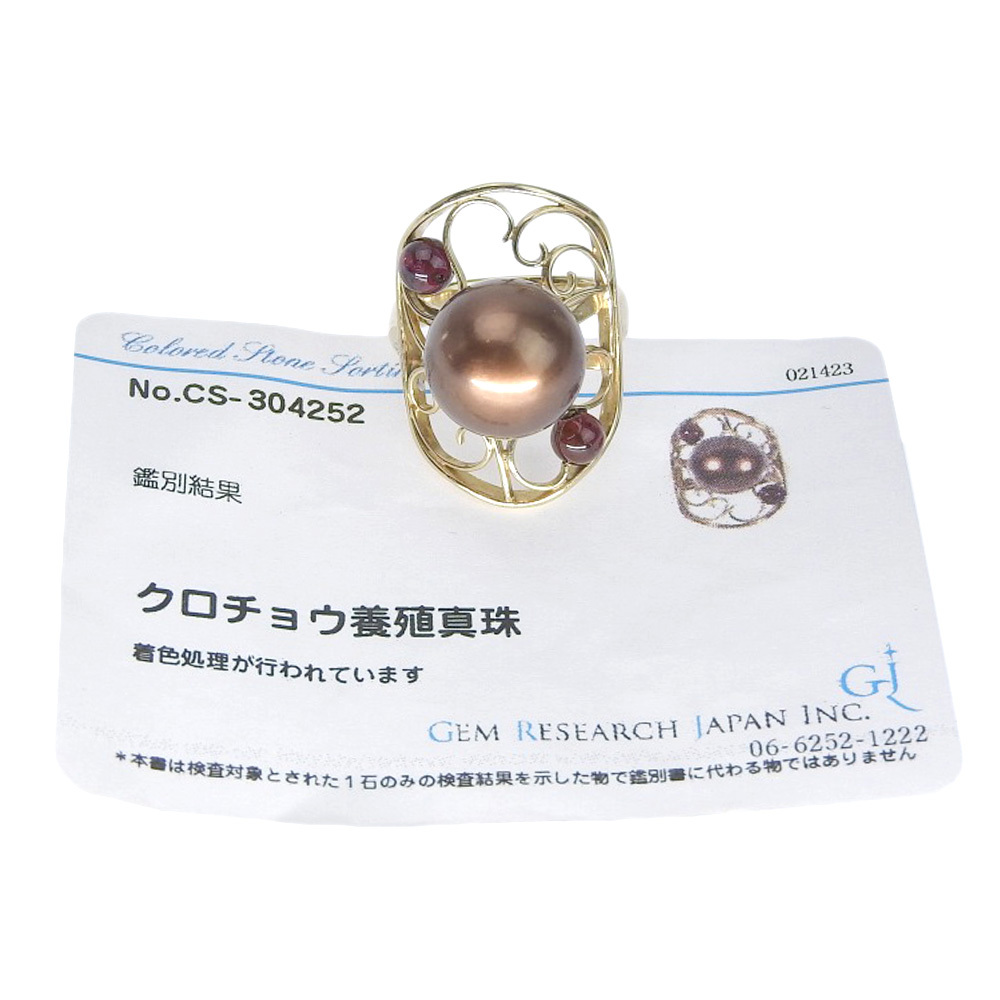 | 素材 | K18YG 石:クロチョウ養殖真珠 約11.6ミリ 赤色石 |