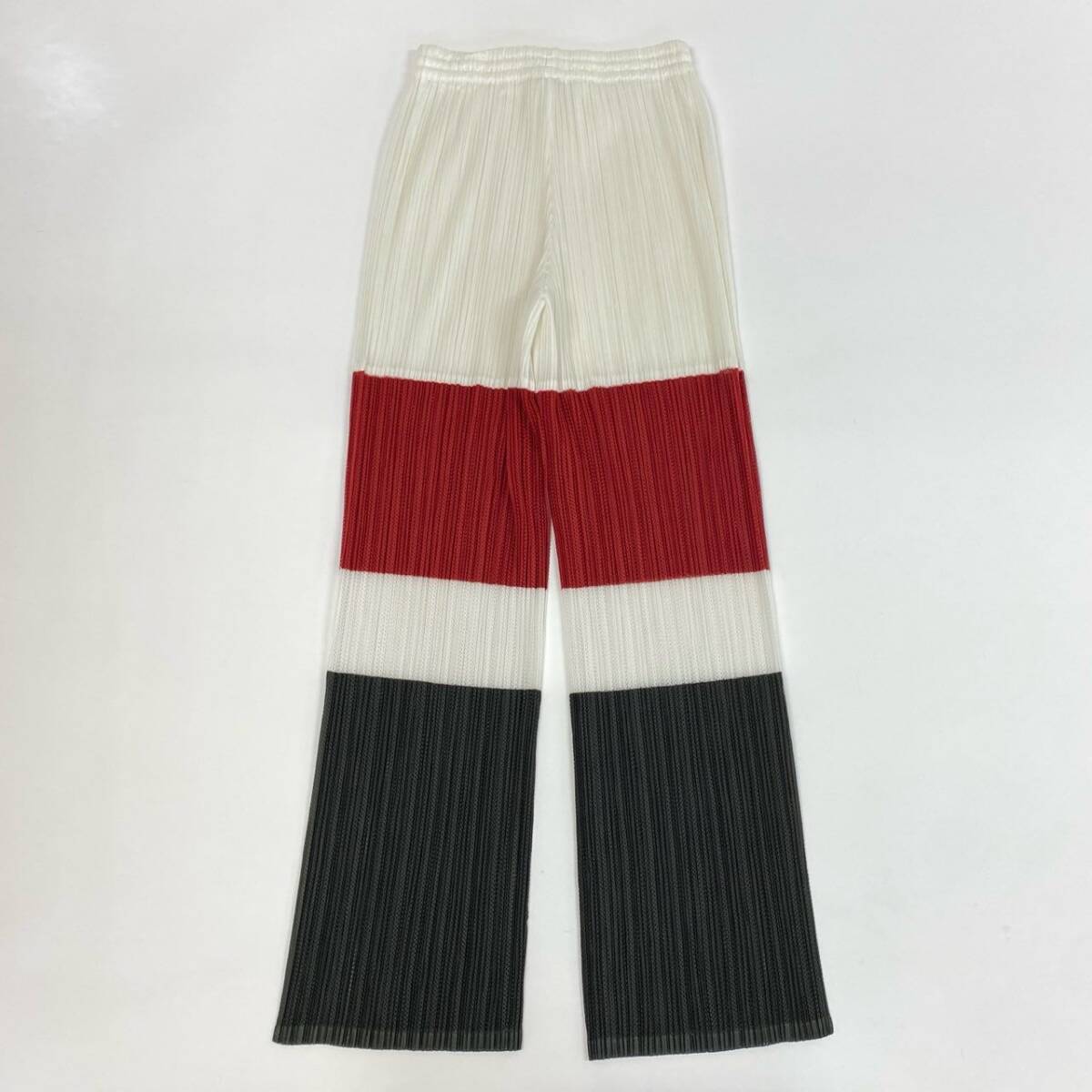 | スタッフ商品コメント | ホワイト・レッド・チャコールグレーの3色ブロッキングが印象的な、プリーツプリーズのプリーツパンツ。ブランド特有の細やかな縦プリーツが生み出す伸縮性と立体感で、快適な履き心地と美しいシルエットを両立しています。ウエストは総ゴム仕様で、リラックス感がありながらも上品な印象。軽やかでシワになりにくく、トラベルやデイリーコーデにも最適です。モダンなカラー配分がスタイリングのアクセントになる一本です。 |