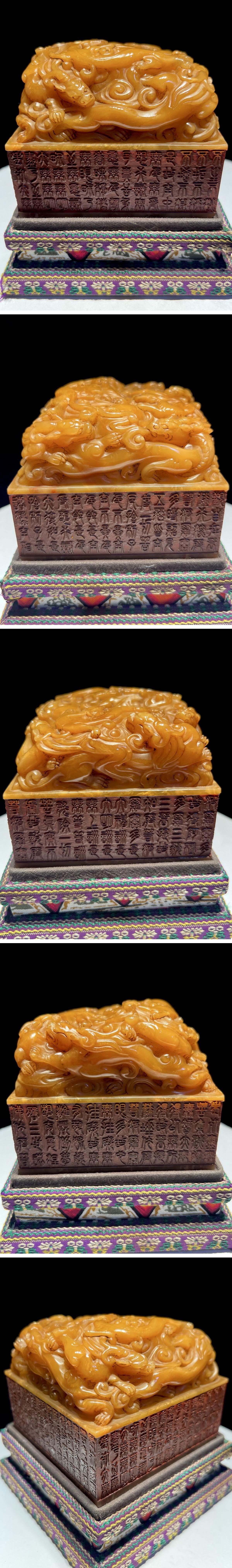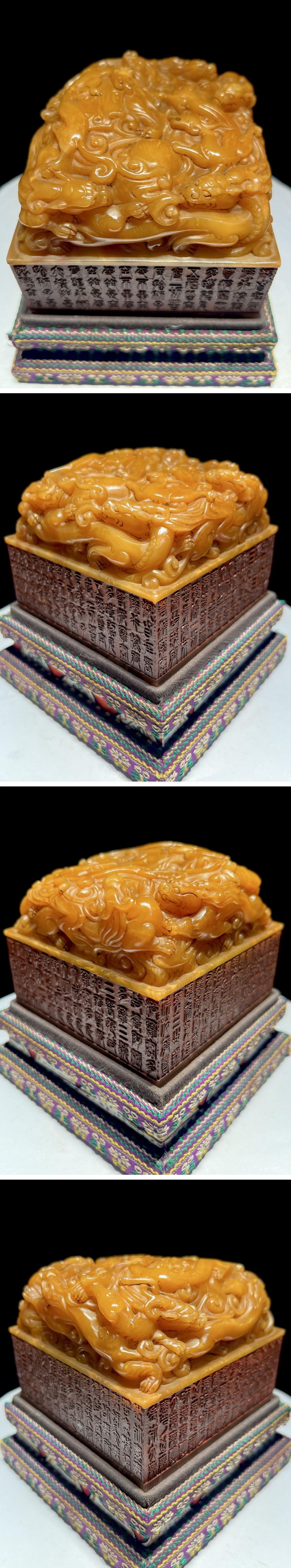 【清】某有名オークション購入 清時代 寿山田黄石 龍文御印 材質保証 古置物 古擺件 古美術 時代コレクション7L10-VZ8