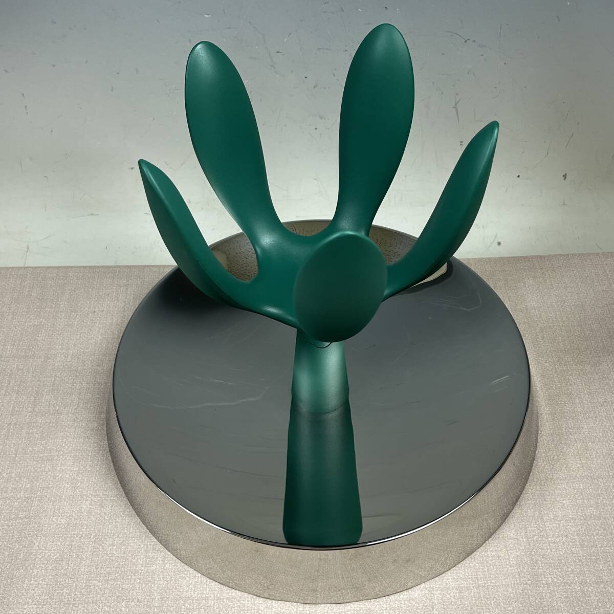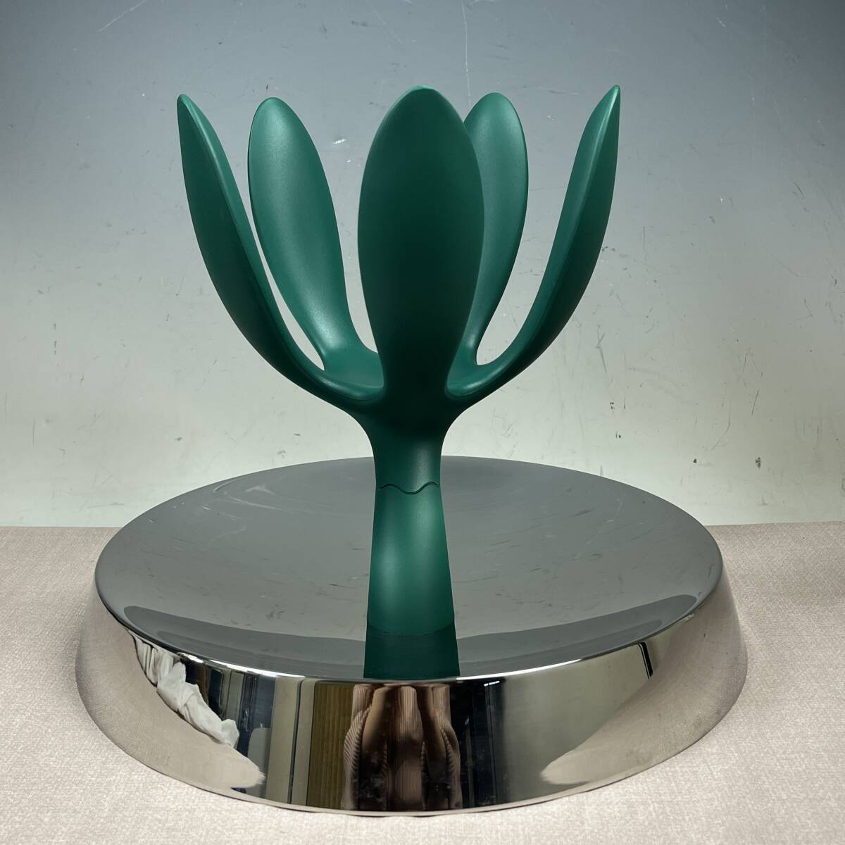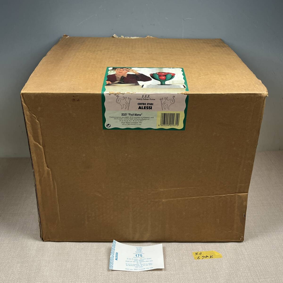 ★商品管理番号 43-6784 ★商品名 ALESSI アレッシィ Fruit Mama フルーツママ フルーツボウル 小物入れ ステファノ・ジョバンノーニ ◆商品詳細 ブランド :ALESSI サイズ :約直径34cm x 高さ26.5cm 重 量 :約1.5kg 素 材 :18/10ステンレススティール(ミラー仕上げ)、熱可塑性樹脂 デザイナー:Stefano Giovannoni(ステファノ・ジョヴァンノーニ)(1993) 新品定価:33,804円 ★商品説明 The Family Follows Fiction Project(以下、F.F.F.) によって生み出された作品の一つです。 F.F.F. は、過去の ALESSI の試みよりさらにエモーショナルな形を探りたいという欲求から1991年にスタートしました。 人間が必要とする最も繊細で、親密で、感覚的なものを大事にすることによって、作品たちは物語を語りだし、使い慣れた普段のかたちに加えられたひとひねりでこちらの気を引き、茶目っ気たっぷりに空想へと誘ってくれる遊びの道具と化し、ファンタスティックな世界への架け橋となってくれるのです。 ★商品状態 長期保管品です。 鏡面加工部分に特有の細かな小キズがございます 画像に写ってる物が全てです。 外箱は経年変化にてスレ・キズ・汚れ等があります。 ※出品依頼商品に付き、詳しい質問等のお答え出来ない場合がございますので、ご了承下さい。 ※評価後の返品&返金は一切受け付けません。予めご了承ください。 ★発送方法 手渡し大歓迎です。 おてがる配送 宅急便(EAZY)送料込み ※領収書を希望される方は、落札後取引メッセージにご連絡下さい。 ※落札後、評価不要の場合は評価は入れない様にお願い致します。 ※当社の詳しい所在地はこちらのホー ムページをご覧下さい。 | ||||