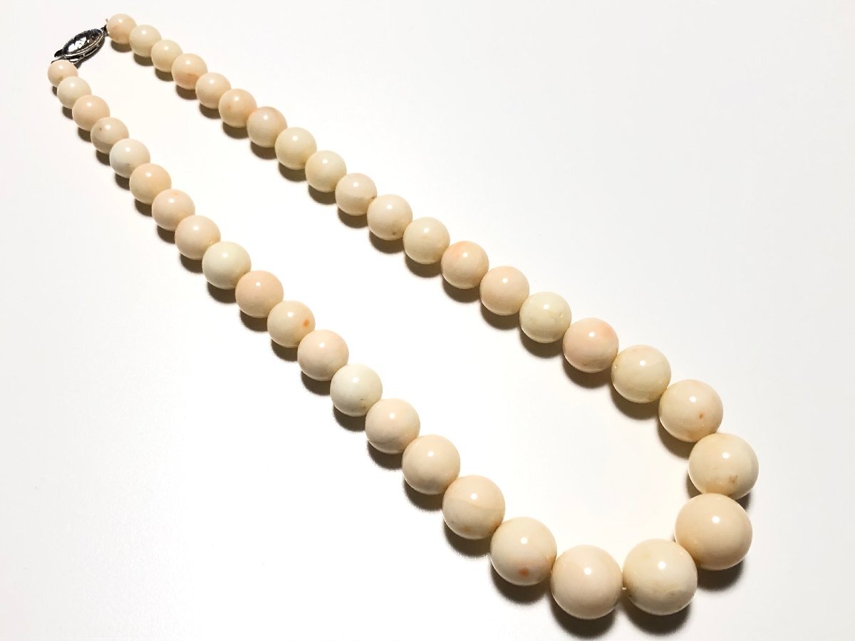 アンティークの本珊瑚を使用した、7.5mm~15.0mm玉のネックレスです。金具部分にはSILVERの刻印があります。数か所の玉にヒビがあります。| 出价者 | 信用 | 价格 | 时间 |