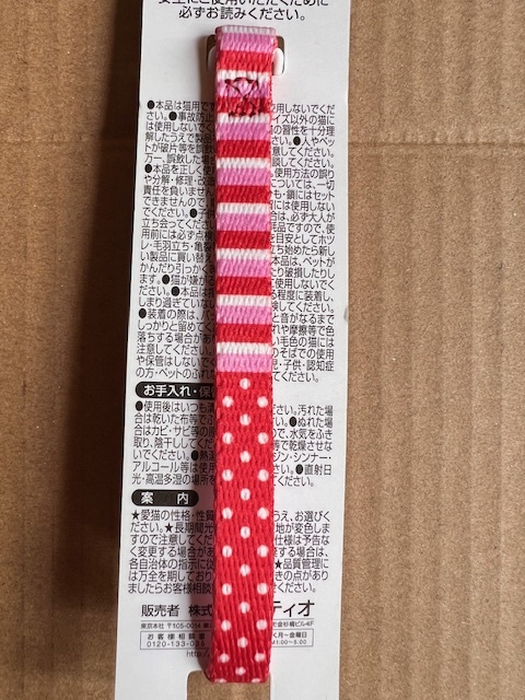 | * 商品説明 * ◆定価712円の商品 首回り17~28㎝で、お外に行かない猫ちゃんに。 ボーダーとドットの切り替えが可愛いポップな首輪。 ※柄の出方は画像と異なる場合があります※ セーフティバックル採用。小さな鈴付き。 未使用新品ですが台紙にややダメージ等ある場合があります。 在庫処分品とご理解の上ノークレームノーリターンでお願いします。 。 | ||||||||