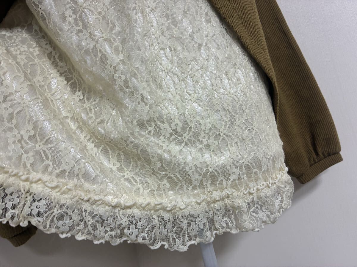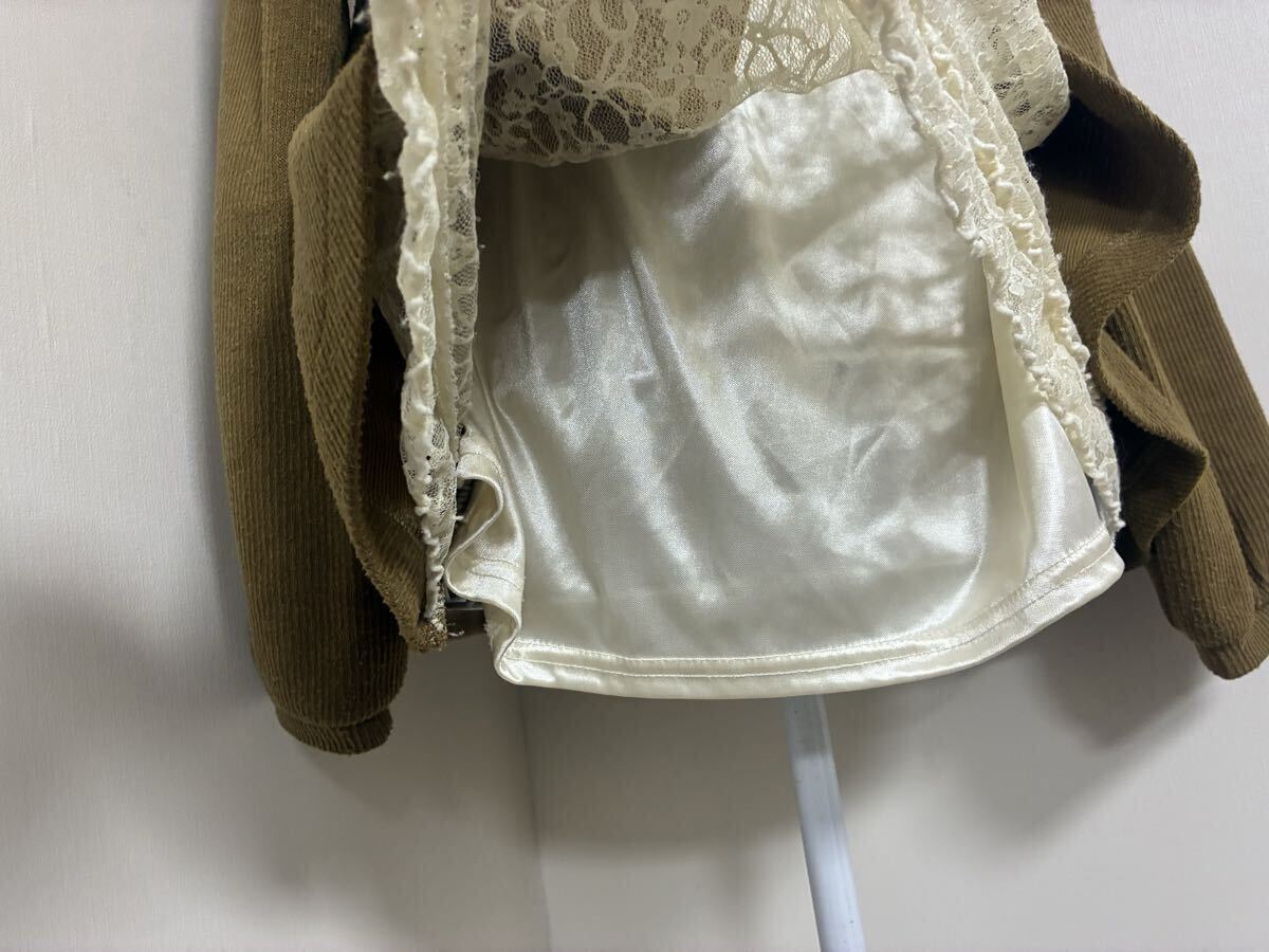 | 自己紹介欄にて発送対応させて頂けない日をお知らせしていますのでご確認をお願いします。 ショッパーは付きません。 サイズ:M 着丈: 約62cm 肩幅: 約 35cm 身幅平置き:約47cm 袖丈:約60cm ※素人採寸の為少しの誤差はご容赦ください。 色:カラシ系 状態:usedですので、小さな汚れ等気にされる方、usedに新品同様のクオリティをお求めの方、話し合いも頂けず評価よりクレームをお申し出になられる方はお控え下さい。 全体に毛羽立ち感があります。 後ろレースアップリボン飾り幅広レースが切り替えられた細リブプルオーバートップスです。 一同梱発送、送料について一 佐川急便での発送の際のみ3日間分同梱発送します。 最初の落札日を含む3日間分です。 ご不明な際にはお問い合わせ下さい。 4日目分以降の同梱はお受けしませんので必ずご了承の上ご入札お願いします。 佐川急便の送料は 北海道1000円 東北800円 関東から九州は700円です。 沖縄は1800円 離島は別途中継料金がかかります。 佐川急便以外の発送はお受けしません。 | |||