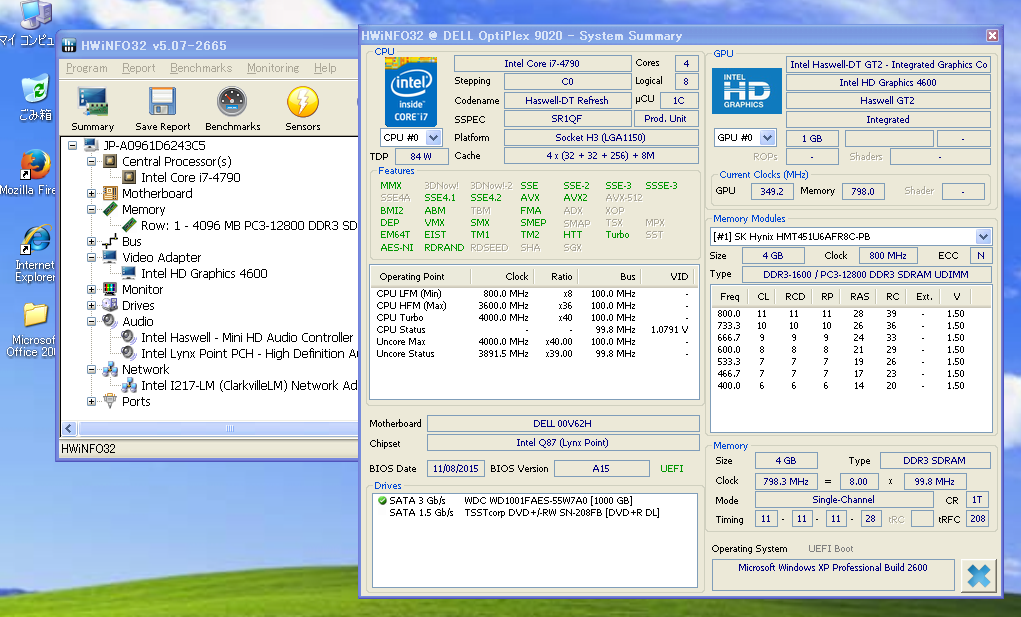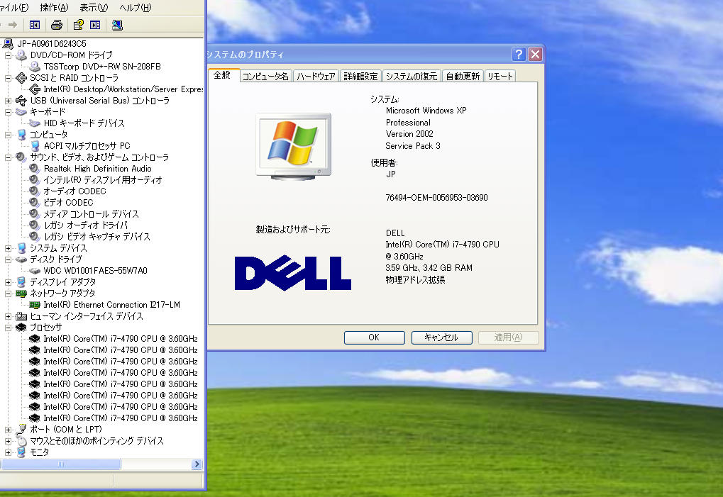 | CPU | インテル第4世代 Core i7-4790 基本クロックは3.6GHz、4コア、8スレッド、ソケットLGA1150 インテル HD グラフィックス 4600を搭載。 |