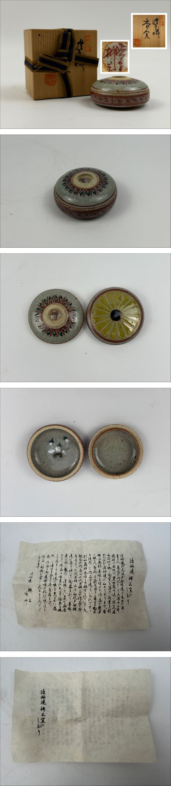 e58 / 香合 渋草焼 竹洞舎 渋草陶窯 渋草柳三作 色絵花文 共箱 骨董品 現状品 [浏览原始页面]