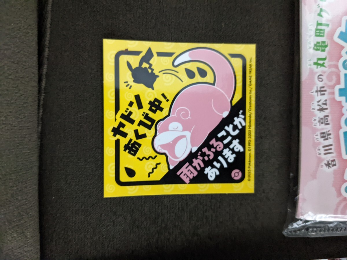 ポケモンセンターカガワのオープンを記念したティッシュ×3種類と、雨の日限定で配布されていたステッカー、そして綾川町でのスタンプラリーのリーフレットのセットです。