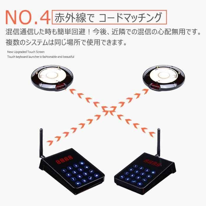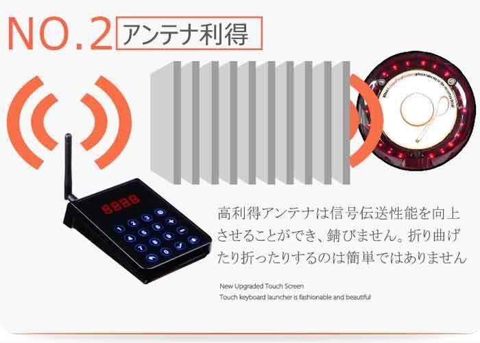 ワイヤレスページングシステム---ゲストの利便性のため、ゲストは注文後に空きスペースで休むことができ、バーで並んで待つ必要はありません レストランのイメージと雰囲気。作業効率が向上します。スタッフの混乱を避けます。キュー内の群衆を最小限に抑えます。レストラン、フードコート、ホテル、ストック、ビジネス、またはキューに多くの顧客がいる他の場所で広く使用されているゲストに、より速く電話をかける