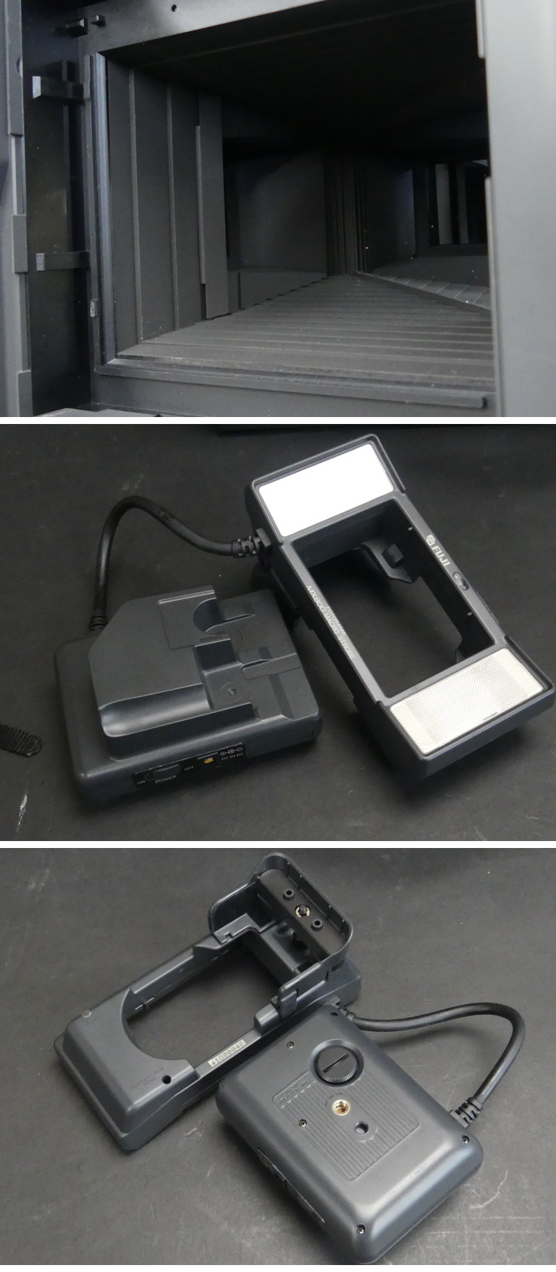 | ◇商品情報◇ | 当店の商品をご覧いただきありがとうございます!! 富士フィルム FOTORAMA フォトラマ MX800 ポラロイドカメラ インスタントカメラ ケース ストロボ 付属多数 古い当時物のオールドカメラですので多少のスレや小傷、汚れ、くすみなどはございます。 現状ではモニターは表示しましたがフィルムが無いので撮影動作は未確認です。 電池残量は少ないですので交換は必要です(電池部のカバーはありません) レンズカバーの開きが少し悪い時があります。 実際に撮影動作、上記以外の詳細な動作、精度、状態チェック等は行っていません。 現状でのお譲りとなりますので点検整備等が必要な場合は落札者様にてご対応ください 付属品、状態などは画像よりご確認、ご判断くださいませ。 ※目視チェックをしていますが、表記漏れや見落としや細かな擦れ・薄汚れなどがある場合もございますので予め画像をご確認の上でご入札をお願いいたします。 商品のトップ画像端に写っている茶筅はサイズ比較用の備品ですので付属はしません | ||||||||||||||||||||||||||||||