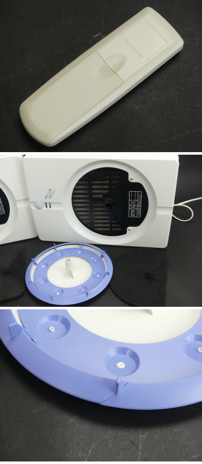 | ◇商品情報◇ | 当店の商品をご覧いただきありがとうございます!! ダイキン 除湿機 JTK10BS 除湿乾燥機 ルームドライヤー カビ防止 動作確認済 リモコンあり 2台セット 2台ともに電源をつなぎリモコンにて動作の確認はできました。 パワフル運転、タイマー、自動運転など短時間の確認のみですが行えました 2008年製の家電になりますので現状でのお譲りとなります。 *リモコンは1台分のみですが2台とも同じリモコンで操作できます* (並列すれば2台同時操作も行えます) 本体、リモコンともに比較的綺麗な状態かと思いますが経年相応のスレや薄汚れ、小キズ、使用に伴う汚れなどはございます。 一台は正面円形カバー縁に割れがあり(画像参照) 付属、状態などは画像よりご確認、ご判断くださいませ。 ※目視チェックをしていますが、表記漏れや見落としや細かな擦れ・薄汚れなどがある場合もございますので予め画像をご確認の上でご入札をお願いいたします。 商品のトップ画像端に写っている茶筅はサイズ比較用の備品ですので付属はしません | ||||||||||||||||||||||||||||||