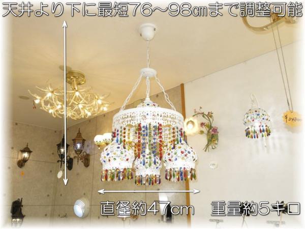 | 注意事項 | 新品・未使用品ですが製造上・輸送等での多少の小傷等はご了承願います すべて職人による手作りのため、飾り付けの大きさ・色合い等画像とは若干異なる場合がございますがご了承願います 取り付けに関しましては引掛けシーリングに対応しており付属の取説を参考に天井装着願います 通常LED電球使用時壁スイッチが調光スイッチ又はホタルスイッチの場合はLED不具合の原因になりますのでON/OFFのみのスイッチに交換願います 調光ご希望の場合、調光対応LED1個¥200-アップと汎用調光器(Panasonic製LED用調光器推奨)が必要です 店頭販売もしており重複した場合キャンセルさせていただく場合がございますがあらかじめご了承願います |