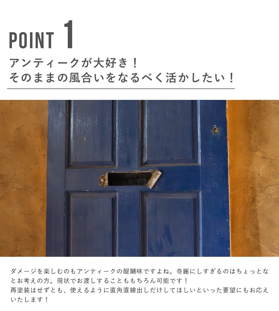 イギリス、フランスを中心にヨーロッパ中から直接買い付けをした本場のアンティーク品となります。 高級なイメージのアンティークですが、当店ではリーズナブルにアンティークをお楽しみい頂けるよう、ステンドグラスは一度に1,000枚以上。アンティークドアも100枚以上を一度に輸入。 全国でも有数の買い付け量を誇ります。 創業以来現在の買い付け量を保つ事で、現地ディーラーとの密な信頼関係を構築。当社に向けてより良い物を提供してもらえる環境作りを維持し、現在では現地取引先約20社と提携しています。 また当店ではアンティークのプロフェッショナルが常駐する工房を完備。修理、メンテナンスはもちろん、ステンドグラス、ドアの制作からカスタムまで、アンティークのご相談はウェリントンにお任せください。 ネットに載っていない商品もまだまだございます。京都伏見のショールームにも是非お越しくださいませ。 ※修理に関するご注意※ ■ 標準修理に関しては別途料金にて承ります。事前に仕上がりサイズを必ずご確認くださいませ。 ■ 標準修理をご依頼の場合、決済確認後の着手となります。恐れ入りますが代引きでのご決済はお断りしております。 |