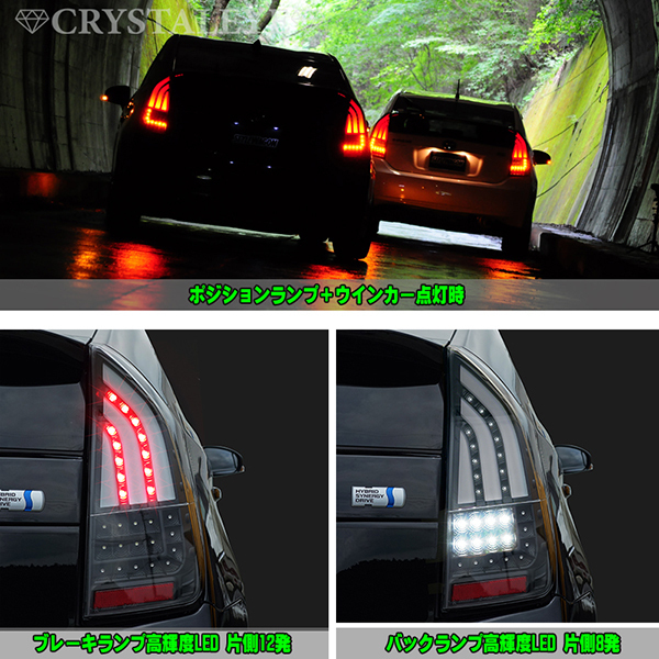 商品番号:J168BC 車種: 30系プリウス 商品名:ファイバーLEDテールV4 カラー:ブラッククローム ※落札後のカラー変更はご対応致しかねますので ご入札前に必ずカラーをご確認下さい。 ▼ 商品説明 クリスタルアイ 30系 プリウス用ファイバーLED仕様 フルLEDテールライト V4 こちらは、従来タイプで人気のV2が シーケンシャルウインカー(流れるウインカー)に ヴァージョンアップしました バージョン4です。 点灯時は圧巻のフルLEDで 満足して頂けます。 シンプルな極太の3本縦ファイバーが、 プリウスにベストマッチング。 ファイバーのキレイな点灯感が、 夕暮れ時を待ち遠しくさせます。 ▼商品詳細 ■新品左右セット ■カプラーオン ■ファイバーLED ■シーケンシャルLEDウインカー (流れるウインカー) (※点滅点灯への切り替えスイッチ 本体内に内蔵) ■LEDバックランプ ■ハイフラ防止リレー付き ▼ 対応車種 30系プリウス 前期後期オールモデル対応 (ZVW35 PHV取り付け可能) ※寒冷地仕様車は、取り付け可能ですが、 リアフォグの機能はなくなります。 |