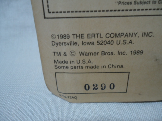 米国にて、個人の方より、購入しました。1989年製。新品未開封デッドストック物ですが、多少パッケージ損傷あります。ERTL社製。スチール・プラスチック製。タイヤ、動きます。サイズは、全長約7センチ・車幅約4.8センチ・高さ約4.8センチです。24時間以内に、お手続き入力後、期限内にかんたん決済、出来る方のみ、ご入札をお願い致します。この商品は、1点物です。 2601