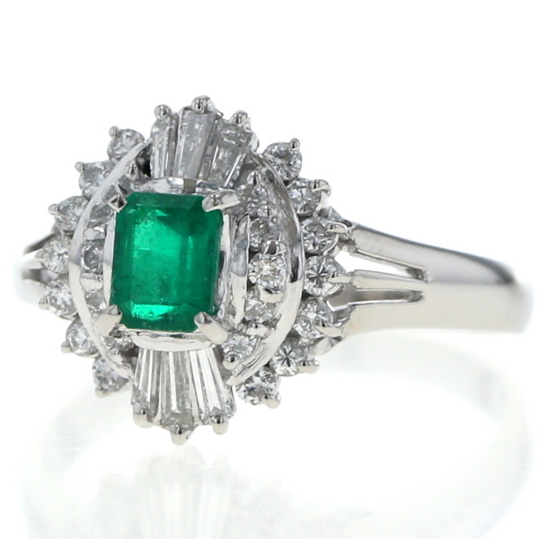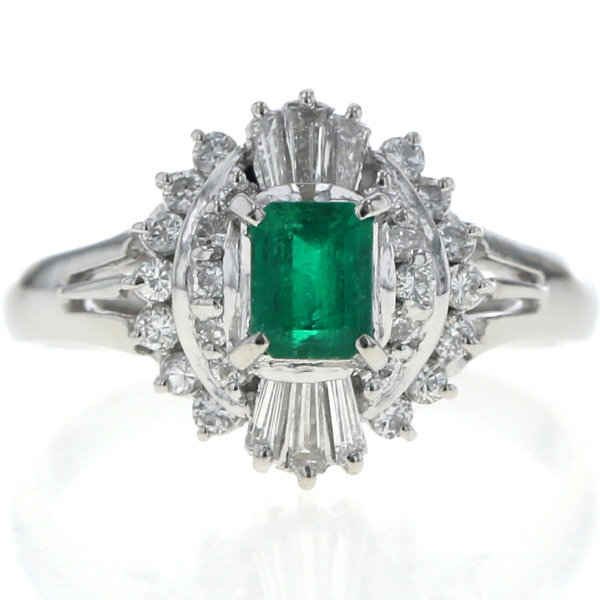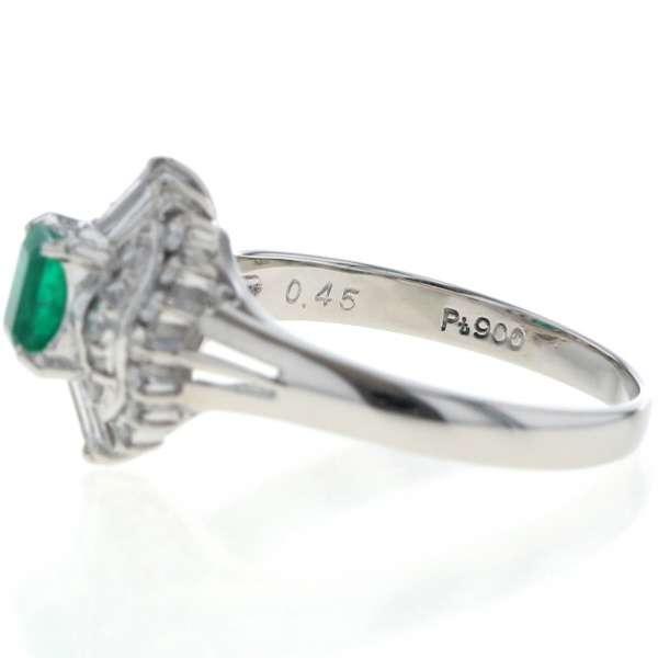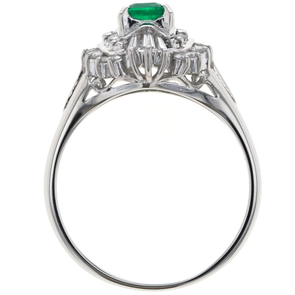 | 商品紹介 | Pt900プラチナ製のリングです。 鮮やかなエメラルド0.45ctを中心に、ダイヤモンド0.43ctが取り巻くようにあしらわれた華やかなデザインです。 気品ある色彩と上質な輝きが調和し、指元に優雅な存在感を添えるジュエリーです。 |