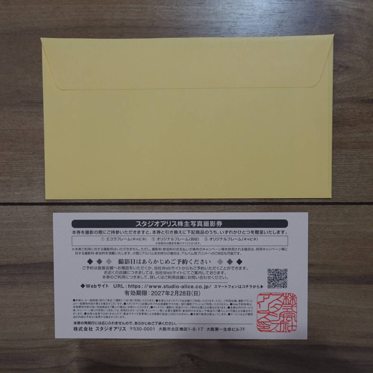 スタジオアリス 株主写真撮影券 株主優待 2027年2月28日まで です。| 出价者 | 信用 | 价格 | 时间 |