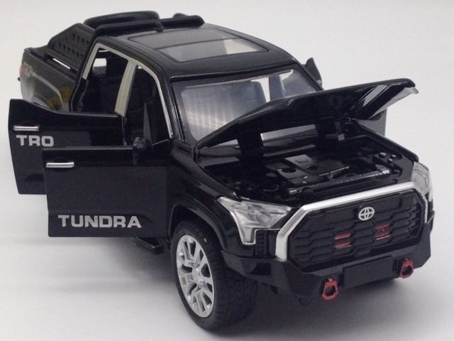 LJX MODEL社製 人気のトヨタ タンドラ XK70型 第3世代 ピックアップトラック こちらの商品はプルバックアクション機能が付いておりますので チョロQのように走らせる事が出来ます。 スケールは1/32 車体サイズ:全長約17.8cm×高さ約6cm×幅約7.5cm ボタン電池のLR-44を3個(新品)お付けいたしますので、 ご自身で電池のセットをお願いいたします。 電池の組み込み、交換には小さめのプラスドライバーが必要です。 ボディはダイキャストメタル製。 シャーシや内装はプラスチック製。 車体の前部分(ボンネット付近)を上から押すとエンジンスタート音と 空ぶかし音が鳴り、ヘッドライト&テールライトも点灯。 ボンネット開閉可能、エンジンルーム再現。 両サイドドア(運転席、助手席)開閉可能。 2列目のドアも開閉可能。 荷台のテールゲート開閉可能。 左ハンドル仕様。 ※こちらの商品は箱入りではございませんのでご注意下さいませ。 神経質な方にはお勧めできません *1台1台検品し、丁寧に梱包しておりますが、 輸入時からの微かな汚れ、傷がある場合がありますのでご了承下さい。 |