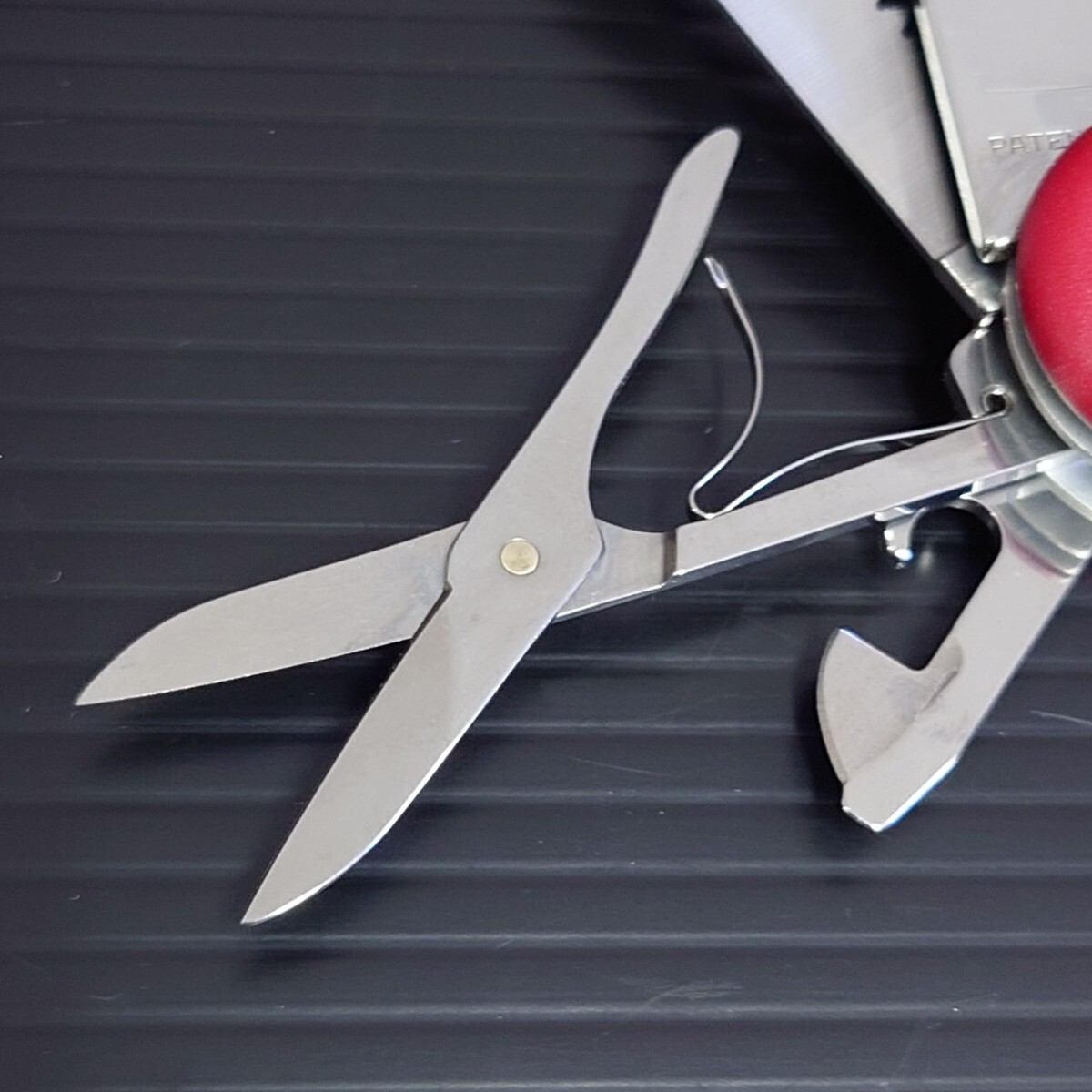 ※サイズ等詳細は 【↓もっと見る↓】をクリック! ブレードは写真では 白っぽく写っていますが 綺麗なミラーフィニッシュです 周囲風景が映り込んでいる場合が 御座いますが 大きな傷等では有りませんので 念の為 新品同様品ですが 一個人の自宅保管品ですので 開閉等による微かな小傷程度御座います 写真で良く確認して頂き ご理解の上ご入札ください。 撮影上開閉はしています ■メインブレード開時全長:約197mm ■収納時長:約110.mm ■メインブレード長:約80mm(実刃長) ■メイン最大刃幅:約14mm ■メイン最大峰厚:約2.4mm ■重量:約132g ■刃材: ハイカーボンクロームモリブデン鋼: CrMo モリブデン鋼 ■付属:箱&書類 【機能】 ラージブレード(大刃)・ コルクせん抜き・ カン切り・マイナスドライバー(小)3mm・ せん抜き・マイナスドライバー(大)6mm・ ワイヤーストリッパー・ リーマー(穴あけ)/パンチ・ ソーイングアイ(糸穴)・キーリング・ ピンセット(毛抜き)・ツースピック・ はさみ・のこぎり・ プラスドライバー(小)(フィリップス型) |