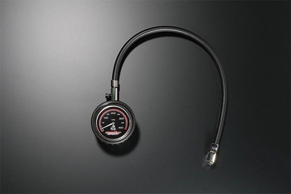 | 仕様 | メーター外径:φ60 厚さ:43mm 重量:280g ホース長:450mm ホース外径:φ10 バルブ形状:φ10米式(一般の4輪自動車採用方式) |