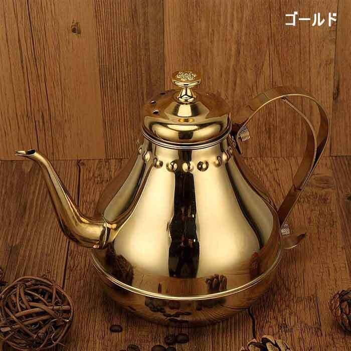 ティーポット コーヒーポットステンレス製 宮廷風 大容量 コーヒーポット 茶こし付き ジュース コーヒー ☆カラー/3色選択/1点