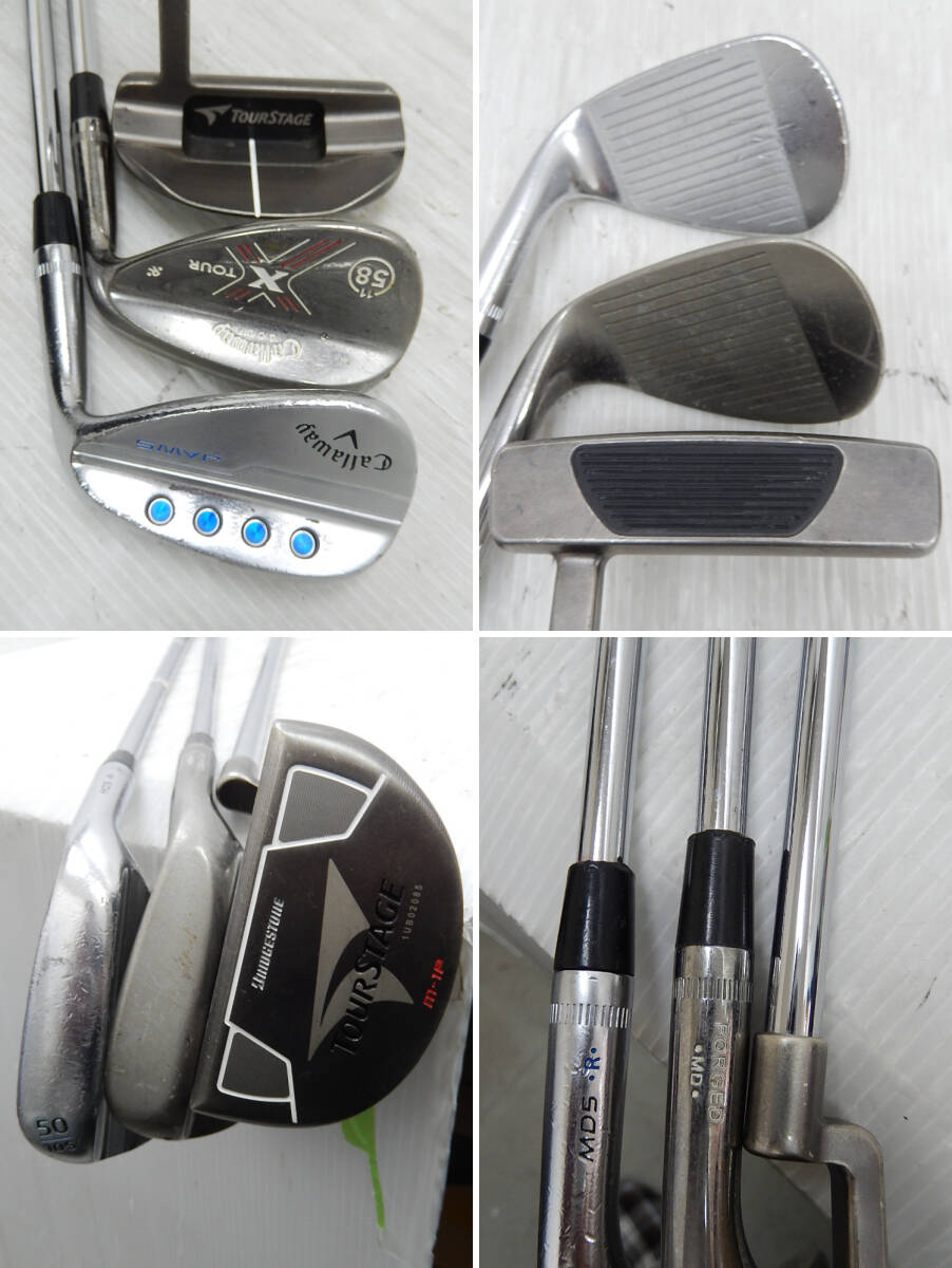 ※商品説明や画像ををよくごらん頂き、ご納得の上でのご入札をお願いいたします。 ■商品内容・状態 ゴルフ メンズ 13本 FLEX-S ブリヂストン ツアーステージ cobra clunkナイキキャディバッグ付き 1W/ ツアーステージ X-DRIVE/ 9.5°/ 約113cm 3W/ ツアーステージ 701/ 15° 5H/ cobra/ 25°/ 39.25インチ 7H/ cobra/ 31° 5I~9I・P/ ブリヂストン ViQ/ 5I長さ 約96cm ウェッジ/ キャロウェイ JAWS/ 50°/ 約90cm ウェッジ/ キャロウェイ X-TOUR/ 58°/ 約89cm パター/ ツアーステージ/ 約88cm グリップ・・・汚れ・スレ・裂けなど、状態は様々です。 シャフト・・・汚れ・スリキズなどあります。 ヘッド・・・汚れ・キズ・塗装剥げなどあります。 clunkキャディバッグ) 口枠数 5個 口枠サイズ(約) 16×21cm 汚れ・スリキズ・黄ばみなどあります。 目立つヘタリはありません。 詳しくは画像にて、ご確認/ご判断ください。 細かなことを気にされる方は入札をお控えください。 ※写真に撮りきれないキズ等あります。 気づかなかった点があるかも知れません。 ご容赦願います。 細かい事を気にされる方は入札をご遠慮下さい。 ノークレームノーリターンでお願いします。 ■出品物に関しての注意事項 ※中古品である事を御理解戴き入札を御願い致します。 その他不明な点は画像・メーカーHPより御確認・御判断を御願い致します ※ジャンク品および訳あり品と明記がある出品物に関しましては動作確認の取れていないもの、 故障しているがパーツ取りとして出品している商品になります。自己において 修理等できる方、もしくは『ジャンク・訳あり』商品を理解していただいている方のみの 御入札をお願い致します。 ※商品によりメーカー、販売元の保証期間が過ぎている商品がございます。 保証期間の過ぎている商品に関しましては、落札者様の自己責任において 御対応していただくよう御願い致します。 | |