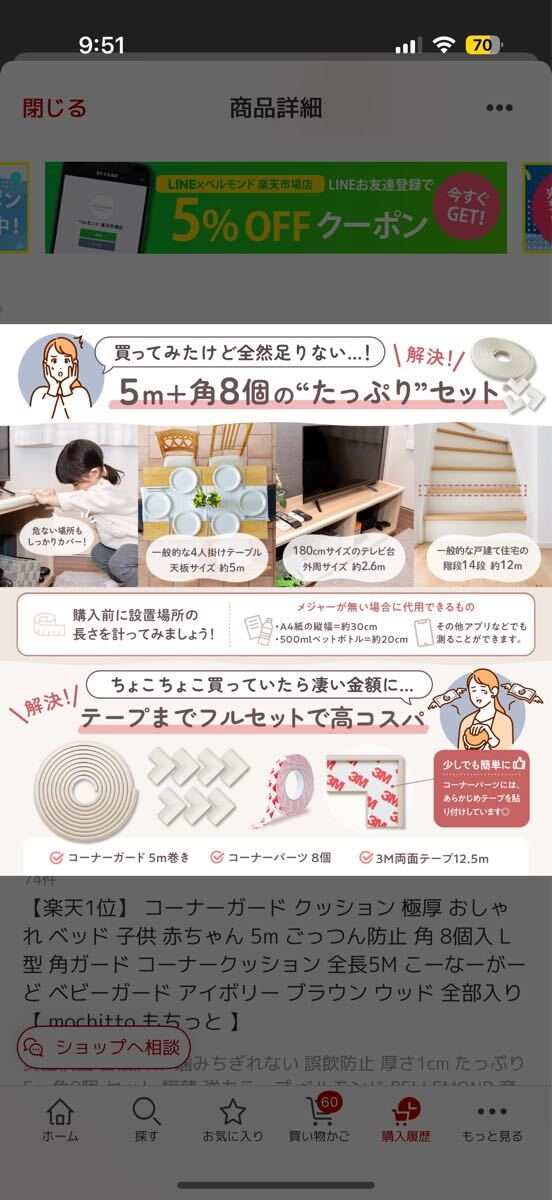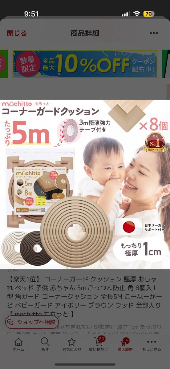 ベルモンド mochitto (もちっと) コーナーガード コーナークッション クッションテープ | 5m+角8個 極厚1cm 大人でも噛み切れない高密| 出价者 | 信用 | 价格 | 时间 |
