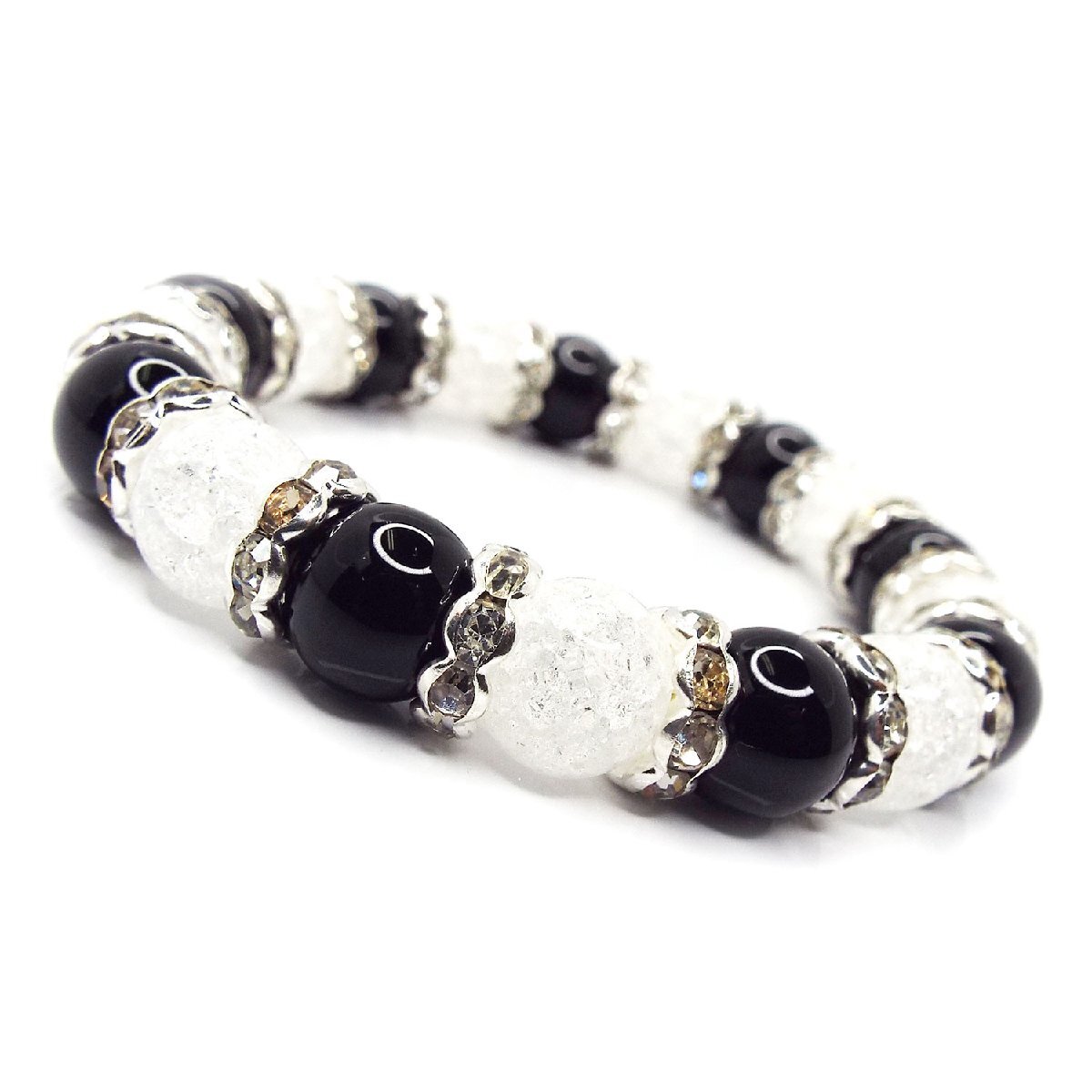 | 【STONE KITCHEN 天然石 パワーストーン】 オニキスとクラック水晶の組み合わせのブレスレットです♪ オシャレ感UPするためにロンデル加えることで全体的なイメージ変わります☆ オニキスは守護石として多く使用されてます。 集中力、抵抗力を高め、絶望感や憂鬱を追い払ってくれるでしょう。 サイズ:オニキス 10mm クラック水晶 10mm 内周:約16cm 1点 注意事項 ※金属部分は汗や汚れ等で変色する場合がございます。気になる場合は 金属磨きや布等で軽くふき取る事をおすすめします。 ※石の種類によっては、艶を引き出すことを目的として、ワックスや着色加工がされているものもあります。 ※表示のサイズは必ずしも最大値・最小値のサイズのものが入っているわけではございません。 ※天然石のため同じものでも色味・模様などが異なります。 ※照明の具合で実際とは色合いが異なる場合がございます。 また、天然素材特有のクラック・内包物を有する場合がございます。予めご了承下さい。 | |