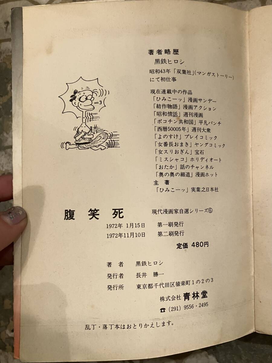 【黒鉄ヒロシ 1970年代 青林堂「腹笑死」/双葉社「結作物語」当時物 コミック2冊SET】 漫画家/コメンテーターで1970年代活躍した黒鉄ヒロシのコミックス2巻セットです。 ギャグ漫画や歴史漫画で有名な作家であり、この二冊も希少な当時のものとなります。 1970年代当時のものとなりますので、経年劣化によるシミ/スレ/破れなどはございます。 ご理解のある方のみ入札宜しくお願い致します。 ≪月・火以外の13:00~20:00で直接お渡しも可能です。≫(東京町田市)