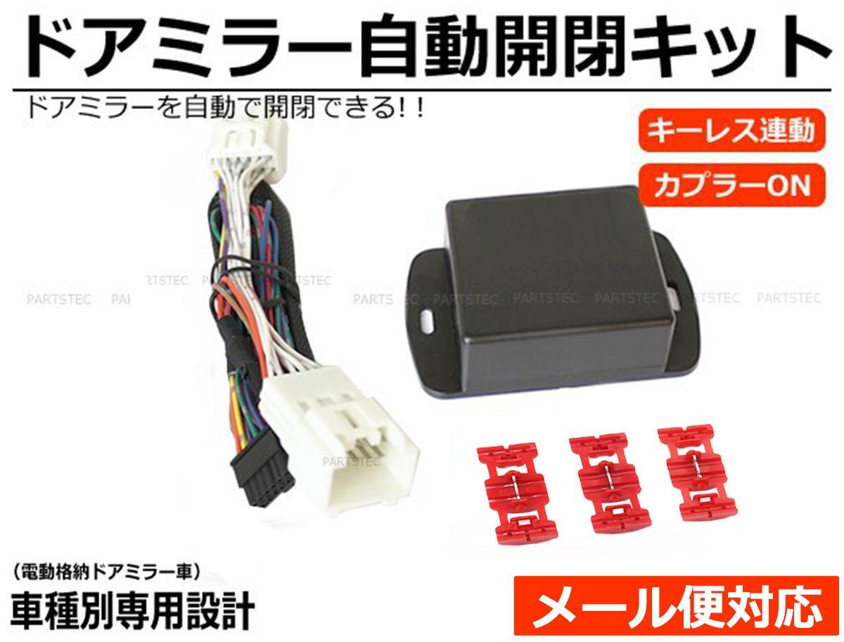 | セット内容 | ・コントローラー本体×1 ・ハーネス×1 ・エレクトロタップ×3 ・車種別結線説明書×1 注意事項 | ※1 お好みの連動パターンにより結線方法が異なります。1つの結線で2パターンの連動を選べる機能ではありません。 ・電動格納機能無しのドアミラーには取付できません。 ・年式、グレードなどにより稀に加工が必要な場合もございます。またその場合の取付不可による返品・返金はお受けいたしておりません。予めご理解の上ご入札ください。 ・取付に関するサポートは行っておりませんので、取付に自信のない方は専門業者へご依頼ください。 ・基本的に在庫はございますが注文状況により在庫切れとなる場合がありますのでお急ぎの方は質問欄よりお問い合わせください。 | |