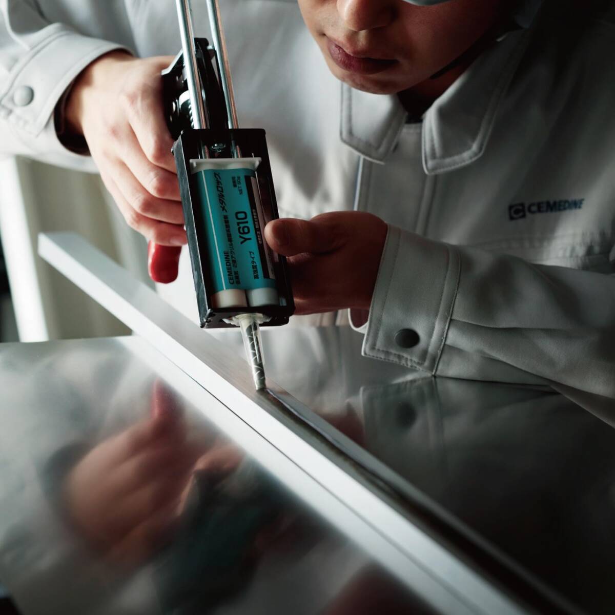 ●金属、フェライト接着一般。●ネームプレート接着、道路標識組み立て。